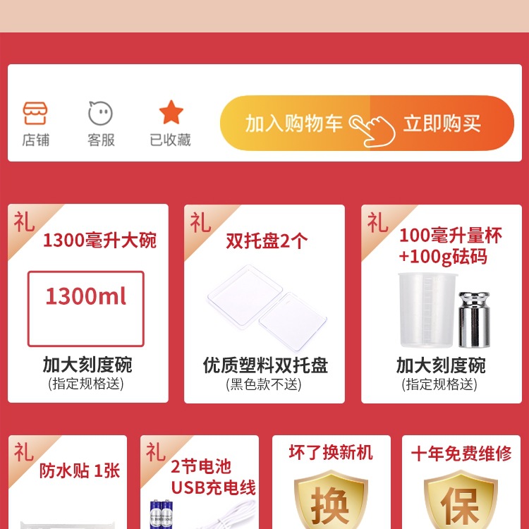 - Перезаряжаемая модель весом 3 кг/0,1 поставляется с семью замечательными подарками, включая двойные подносы + гири + чашки для весов.
