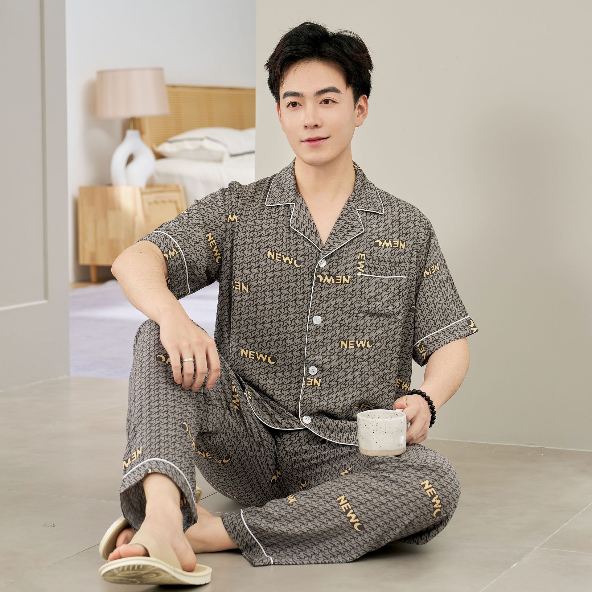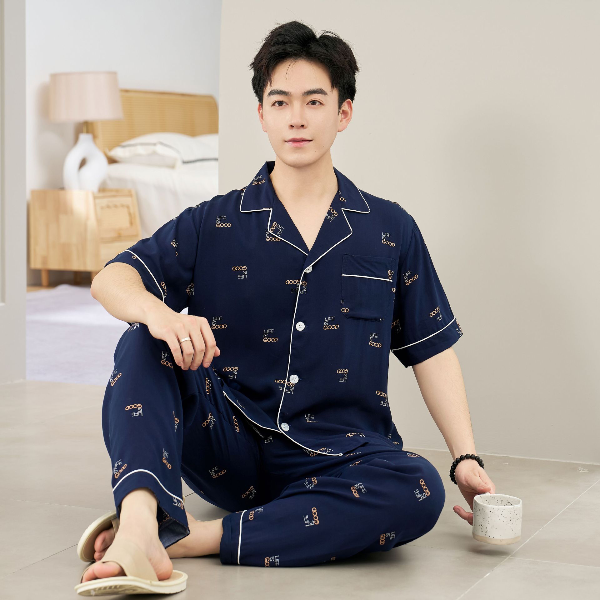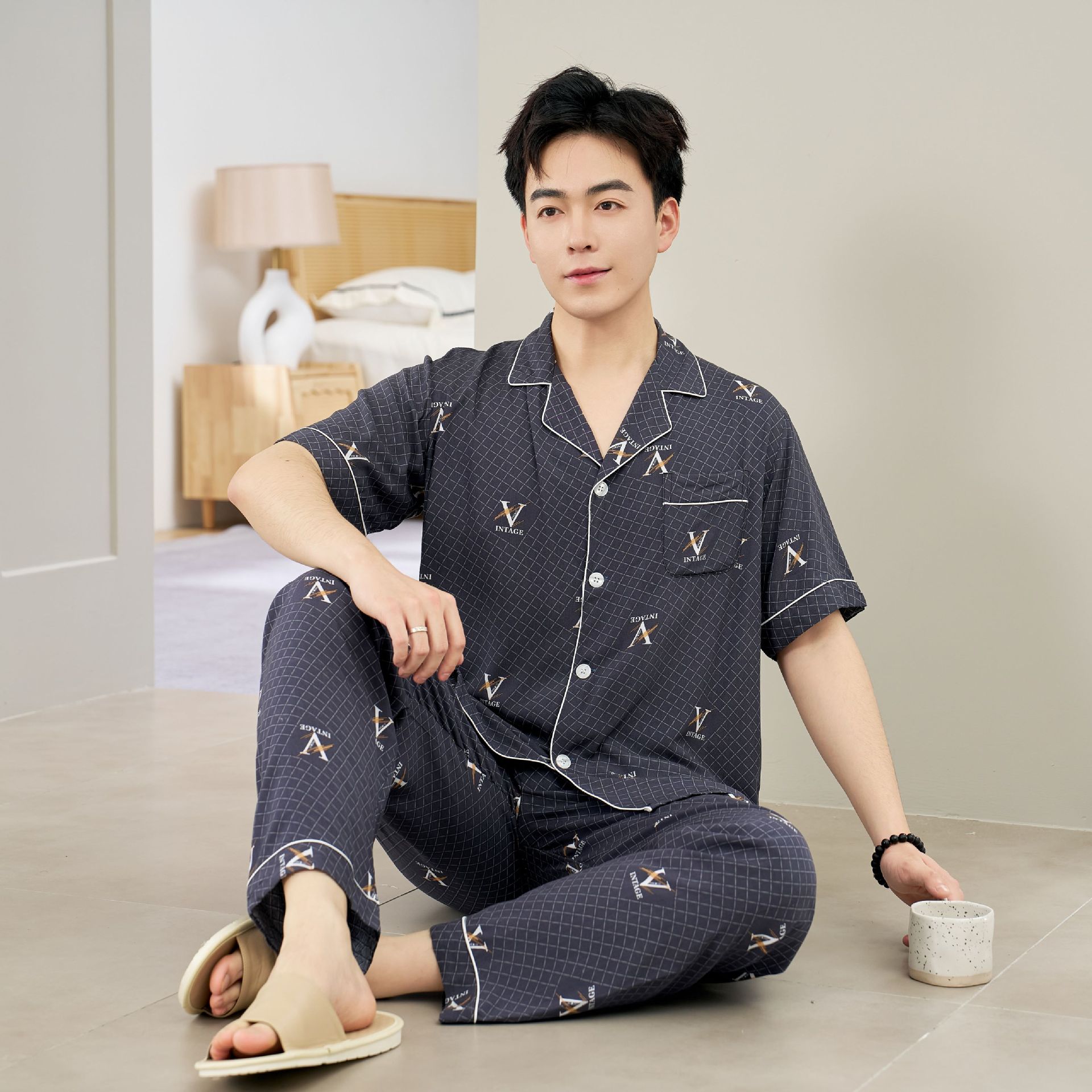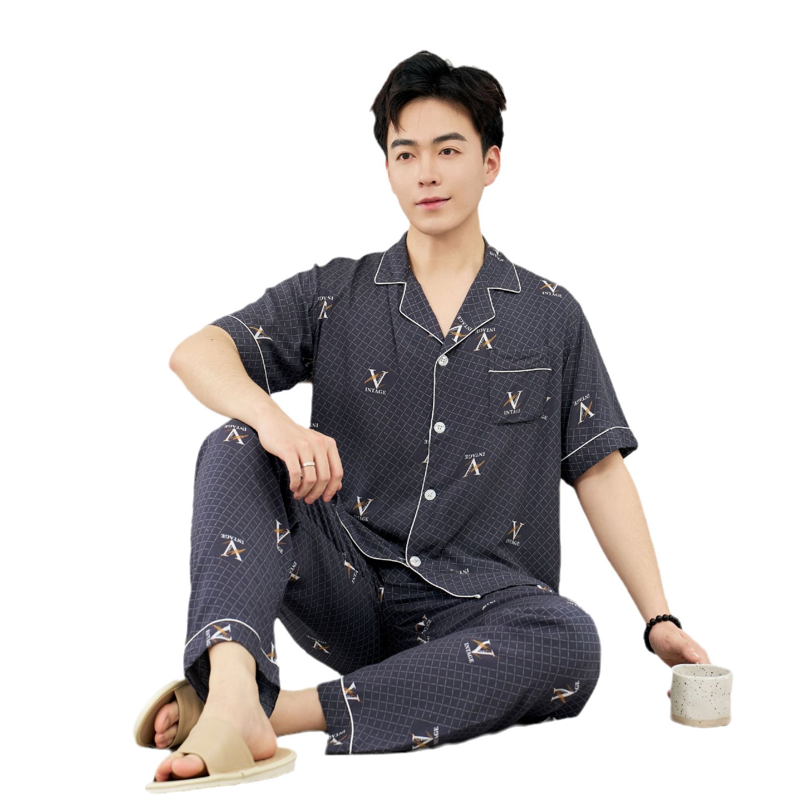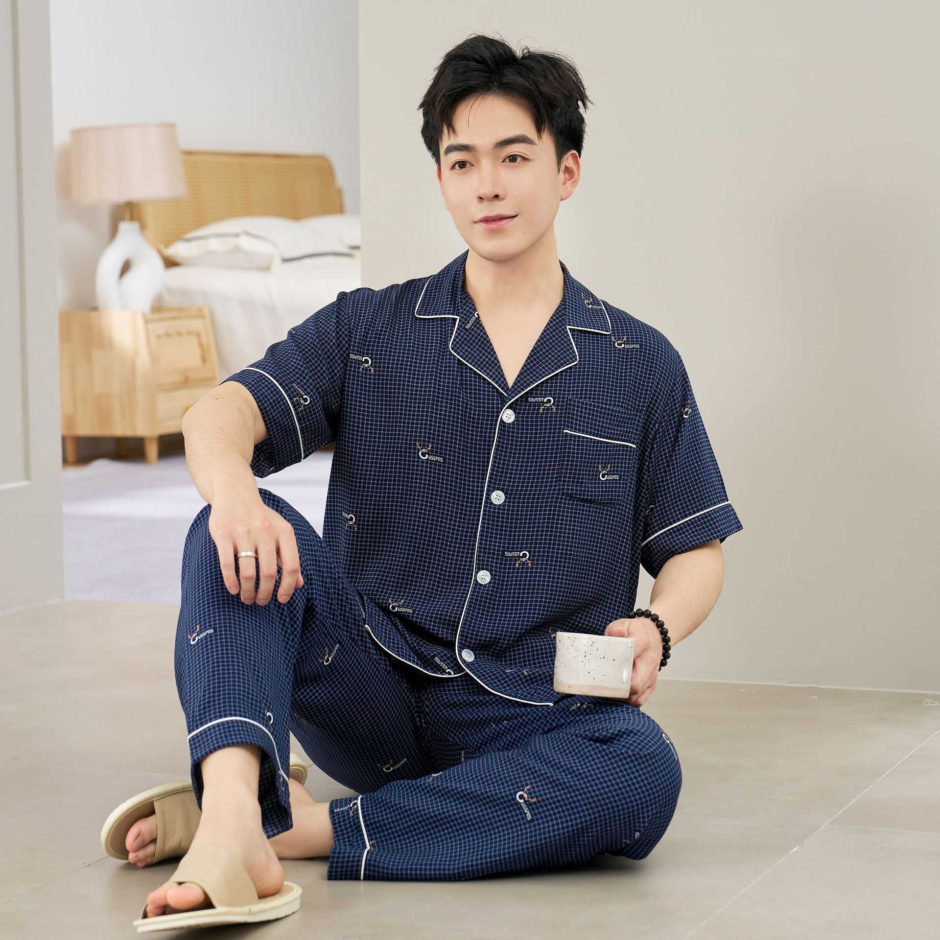 Главная страница > Производитель в наличии новые мужские весенне-Летние Осенние хлопковые тонкие свободные пижамы с короткими рукавами простая удобная домашняя одежда