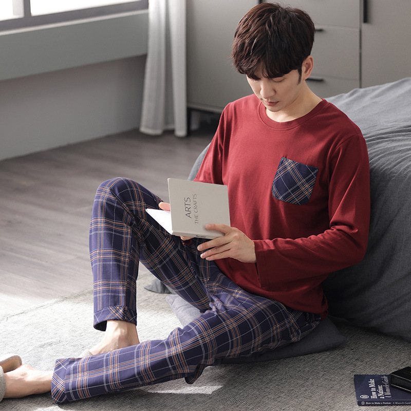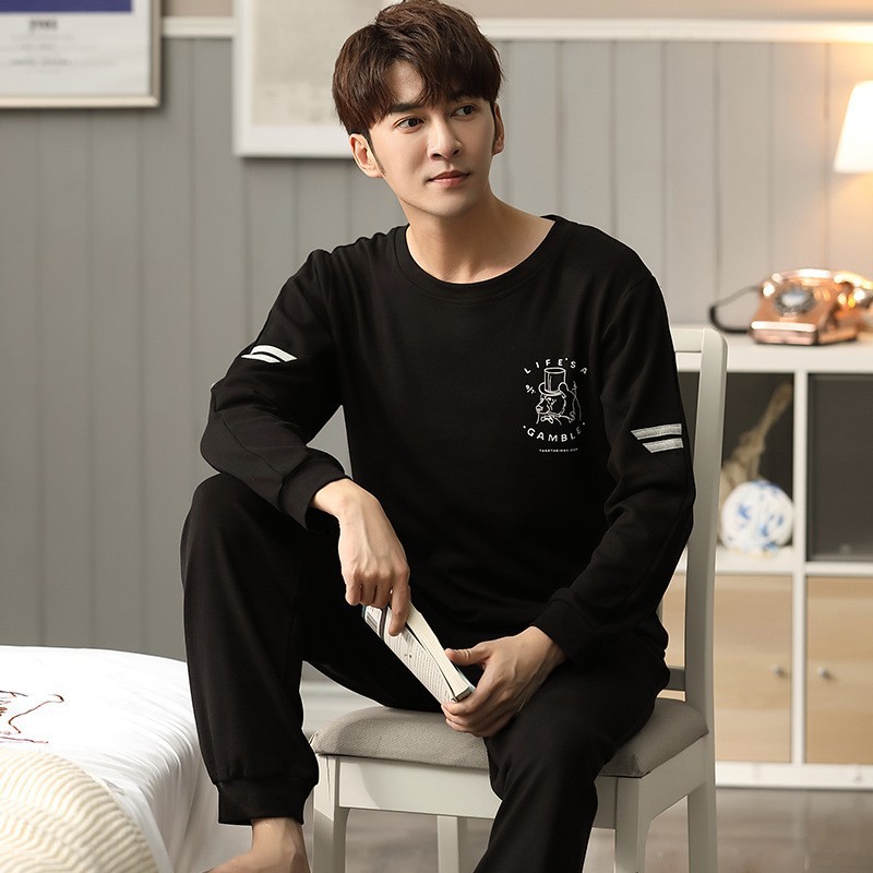Главная страница > Мужские пижамы весенне-осенние, новые молодежные мужские осенне-зимние тонкие повседневные пижамы из чистого хлопка с длинными рукавами, домашняя одежда больших размеров