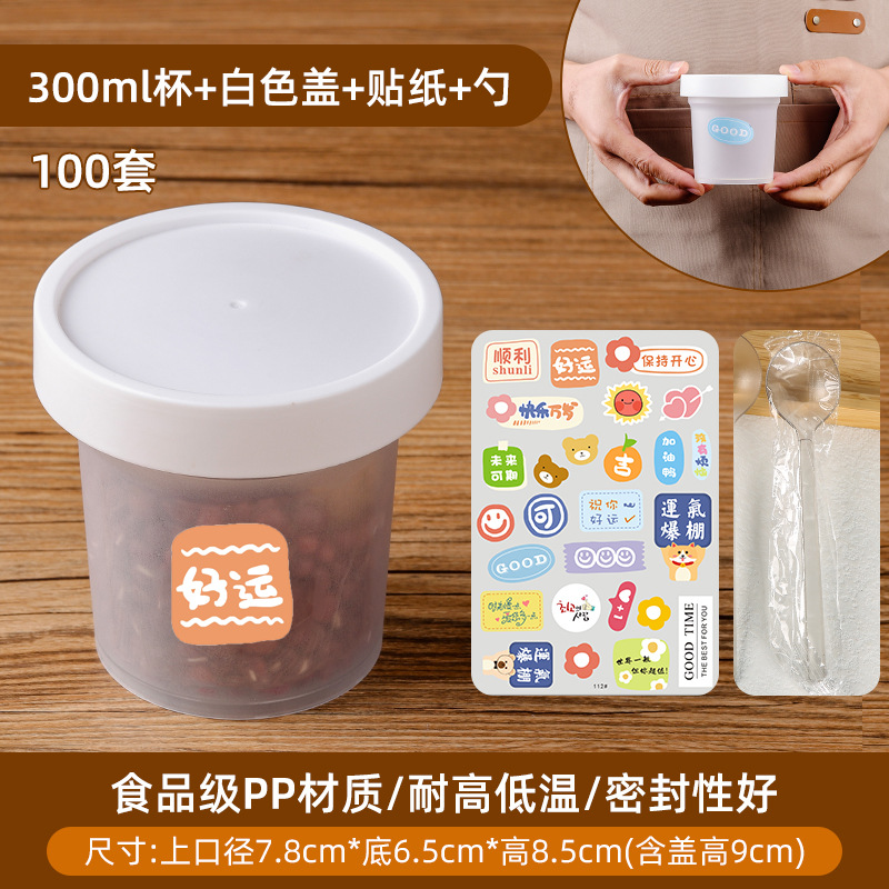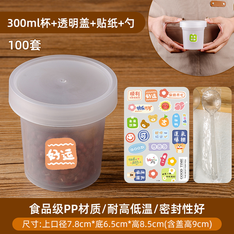 300ml透明盖加好运贴+厚独立勺100套