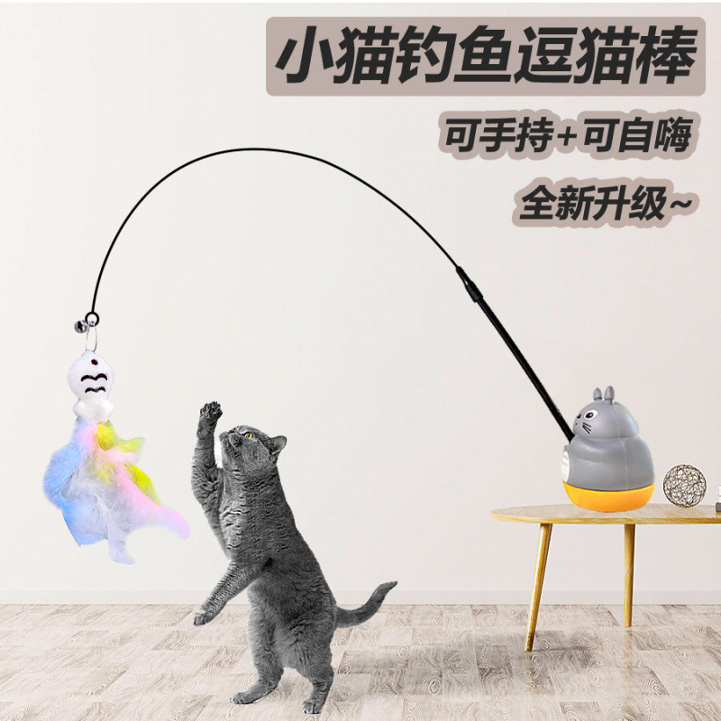 Новая игрушка для кошек, вращающаяся удочка для котенка, палочка для рыбалки, перо, рыба, сменная голова, игрушка для кошек, игрушка для домашних животных