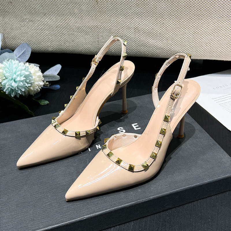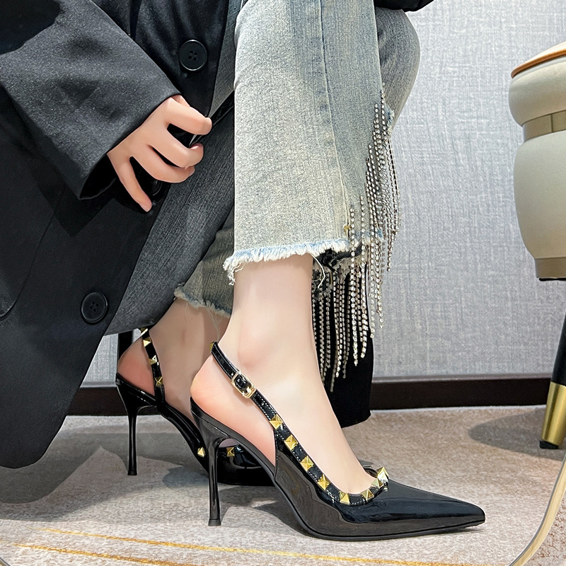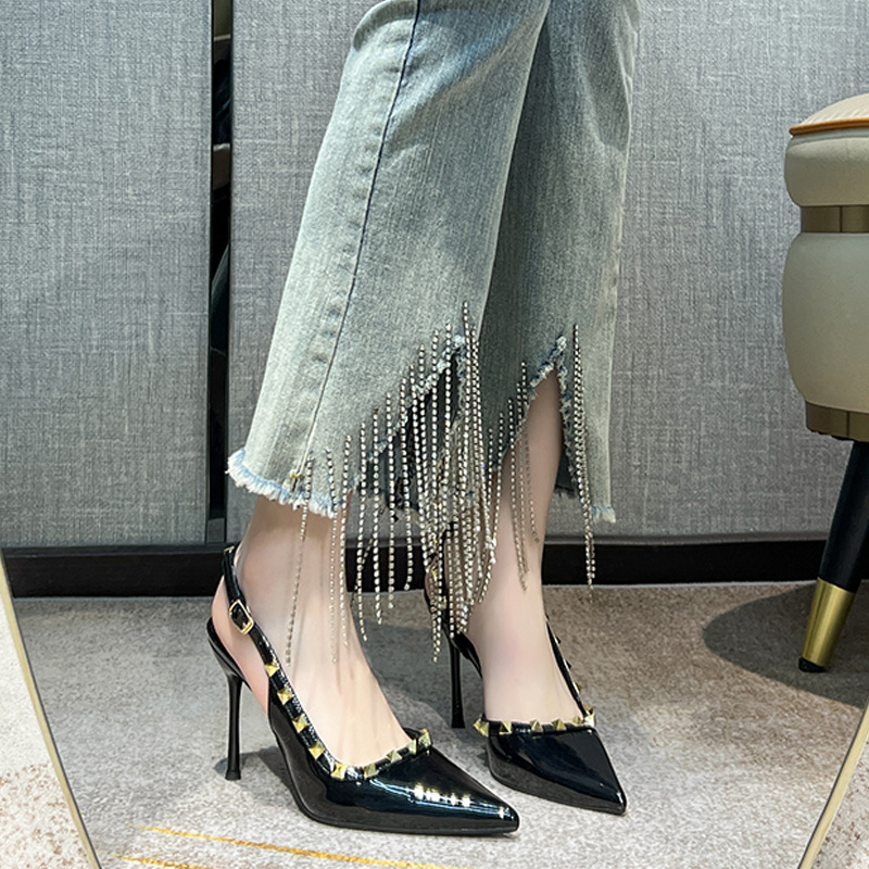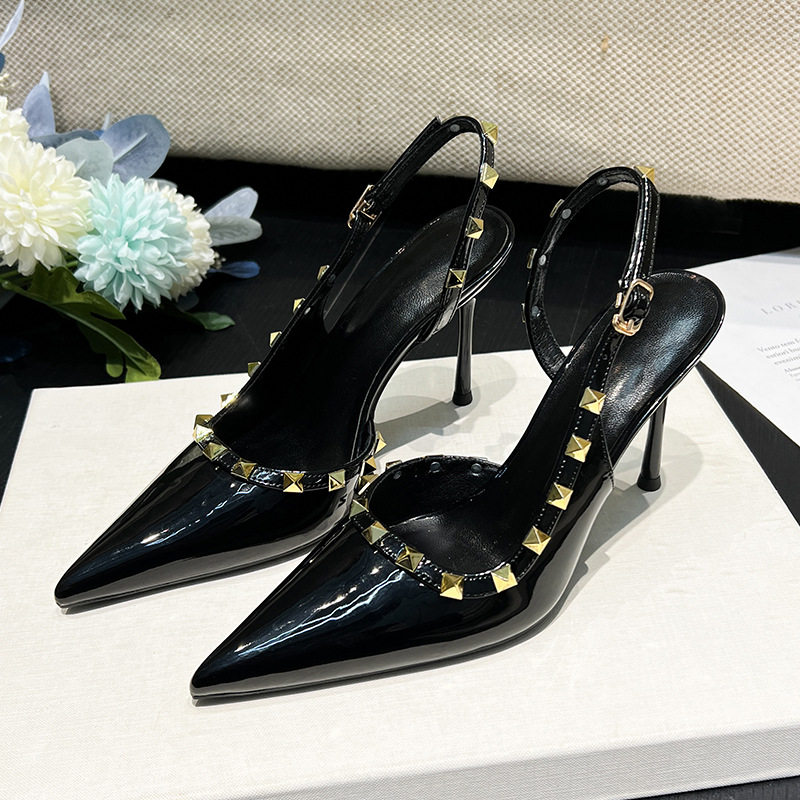Заклепка сетки красные высокие каблуки женские каблуки темпераментные одиночные туфли 2024 новая весна