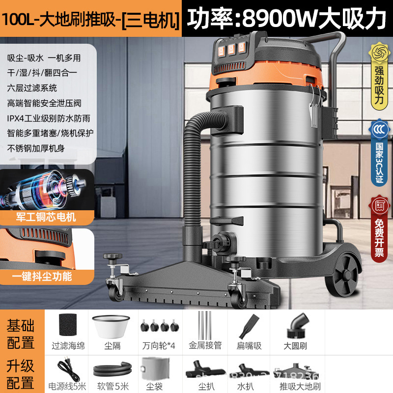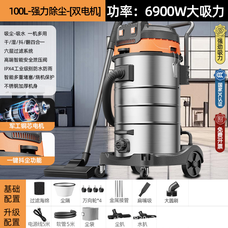 Коммерческая модель-100L [6900 Вт-двойной медный большой двигатель] встряхивание пыли в один клик + 3m трубки