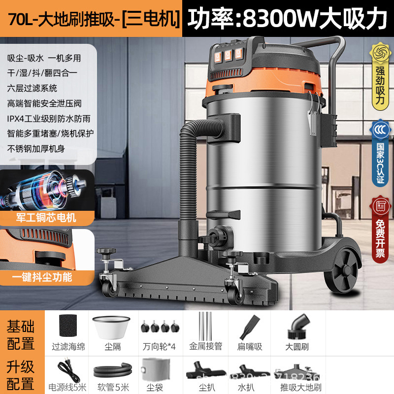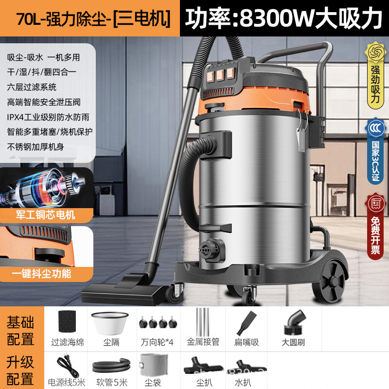 Промышленная модель-70 л супервсасывания [8300 Вт-три двигателя с медным сердечником] встряхивание пыли в один клик + 5m трубки + трехскоростная регулировка