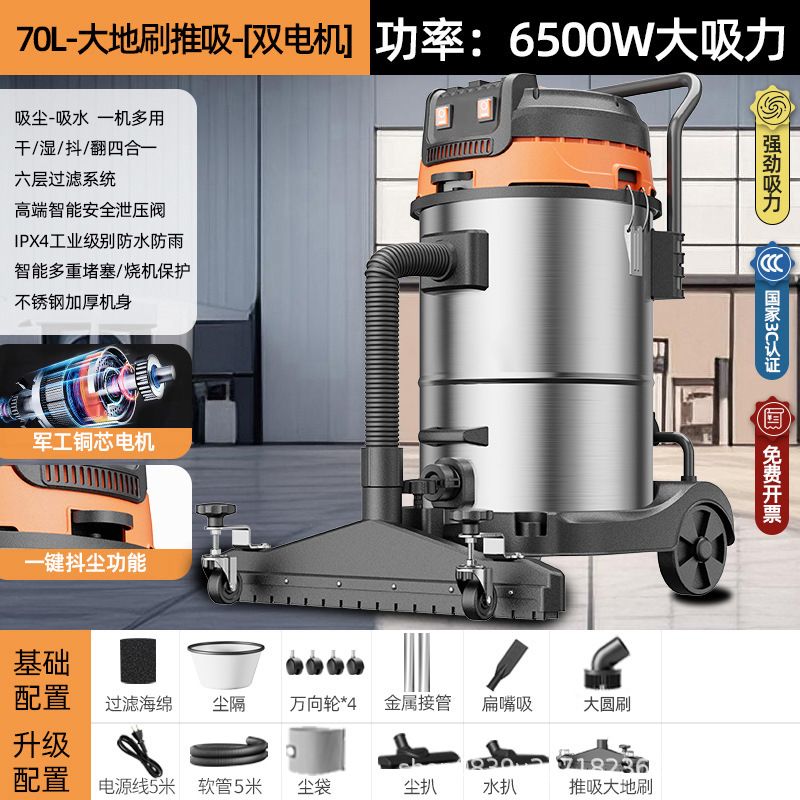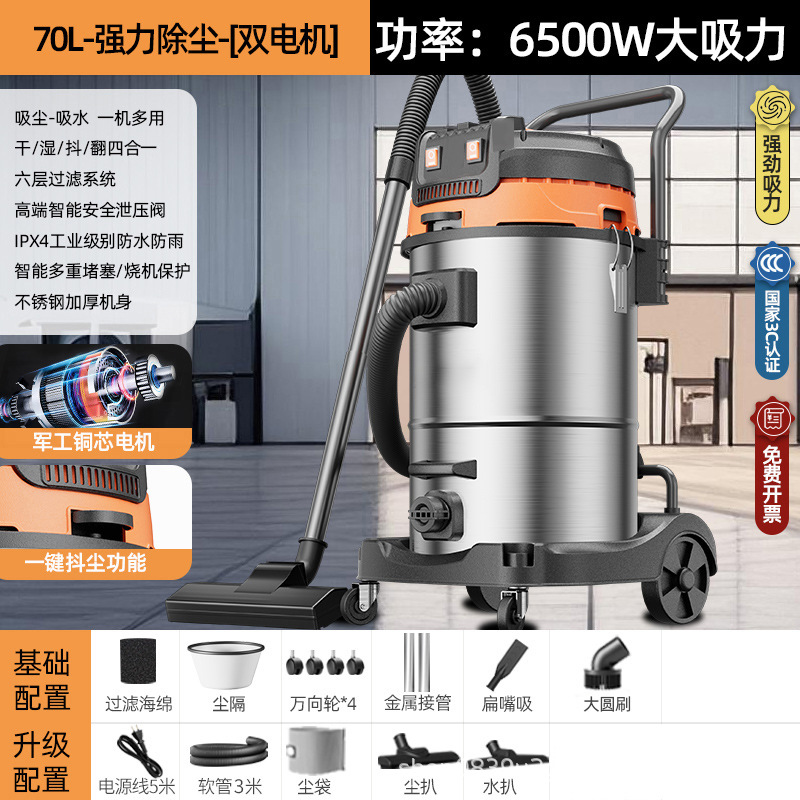Коммерческая модель с присоской-70 л [двигатель с двойным медным сердечником 6500 Вт] встряхивание пыли в один клик + 5m трубки