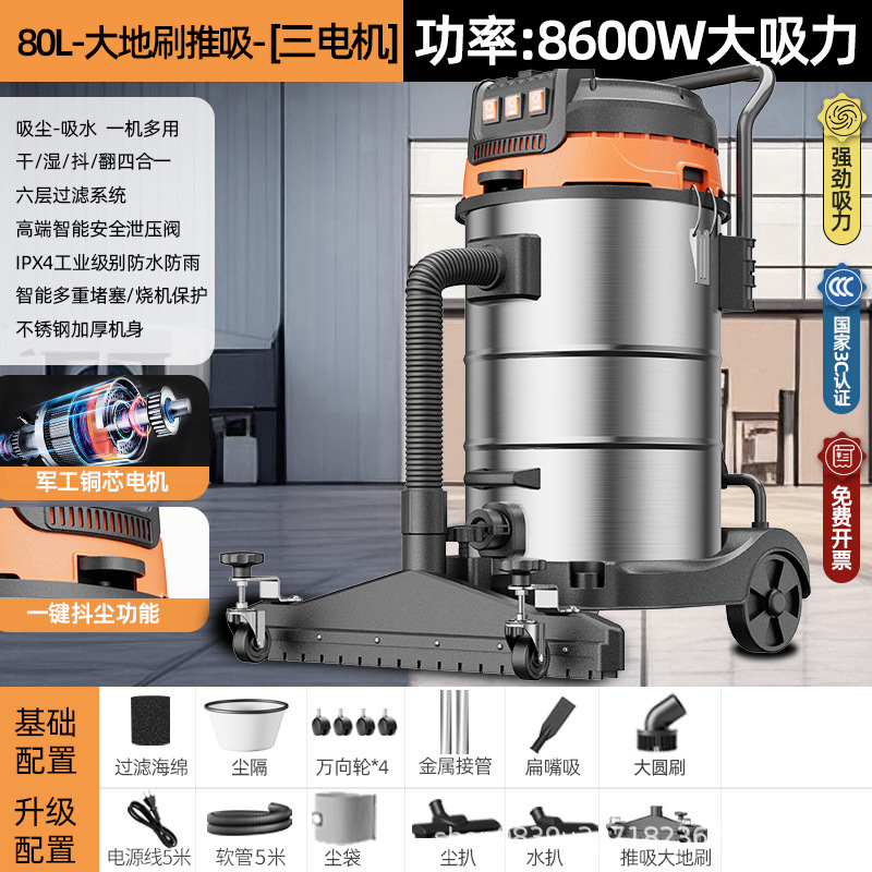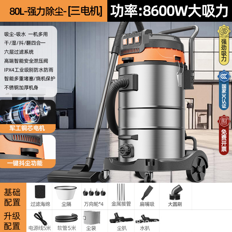 Промышленная модель-80L супервсасывания [8600 Вт-три больших медных двигателя] встряхивание пыли в один клик + 5m трубки + трехскоростная регулировка