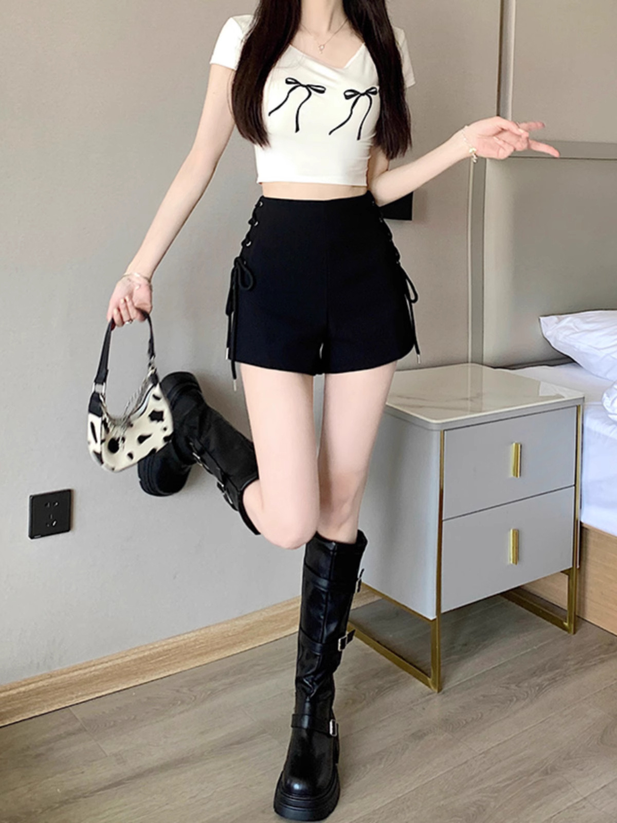 Главная страница > Дизайнерские шорты-костюм с бретелями для женщин, новинка лета 2025 года, для стильных девушек, высокая талия, облегающие, А-силуэта, закрывающие бедра, для верхней одежды.