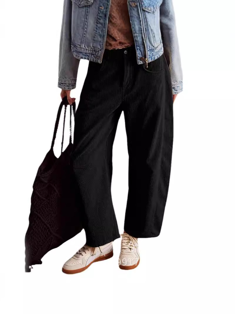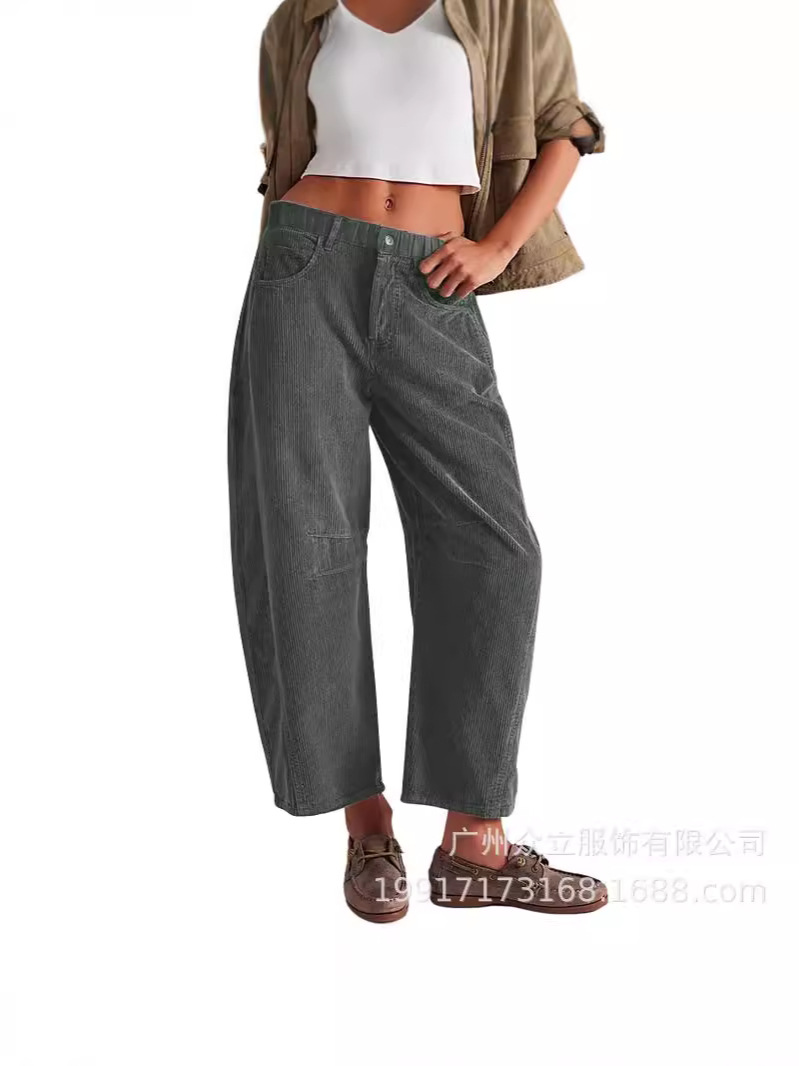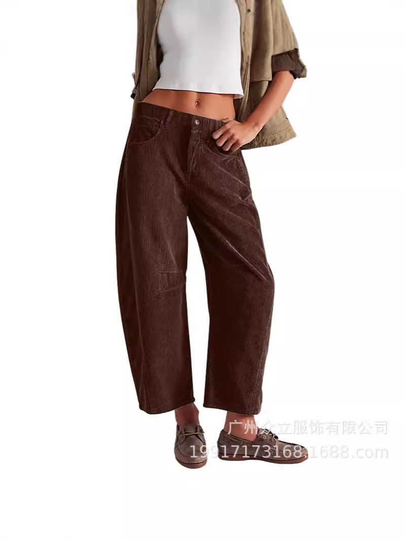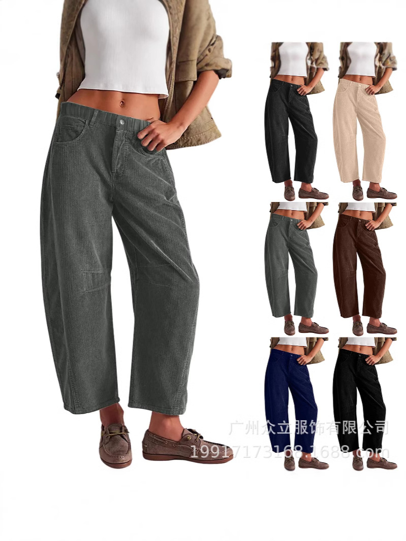 Главная страница > 2024 Amazon осень новые женские брюки с высокой талией повседневные брюки европейские и американские сплошные вельветы свободные прямые брюки женские