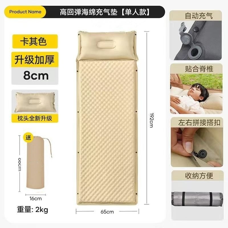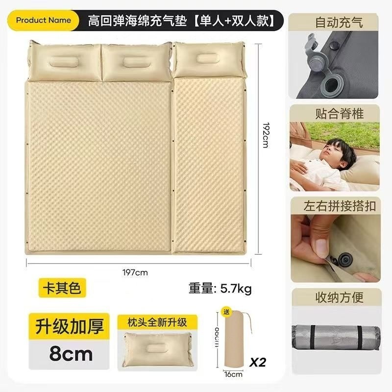 Три человека [Светлый хаки] Автоматический надувной матрас 8 см + сумка для хранения