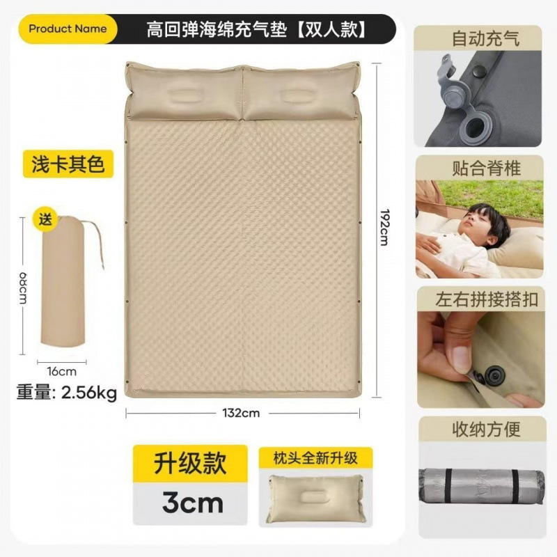 Двойной [Светлый хаки] автоматический надувной матрас 3 см + сумка для хранения -