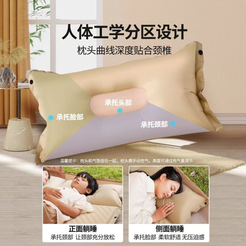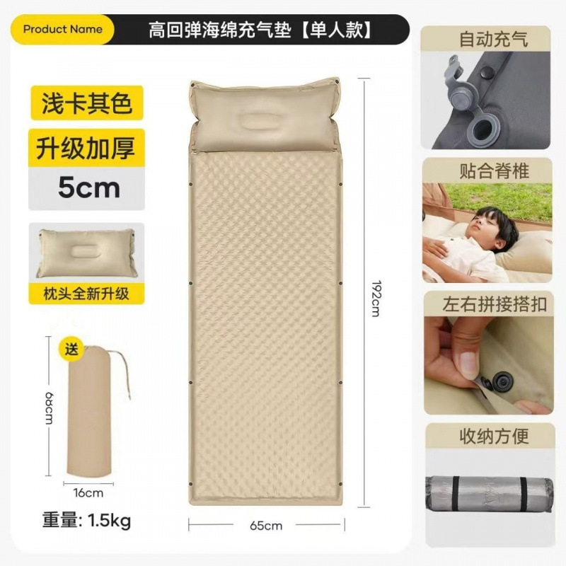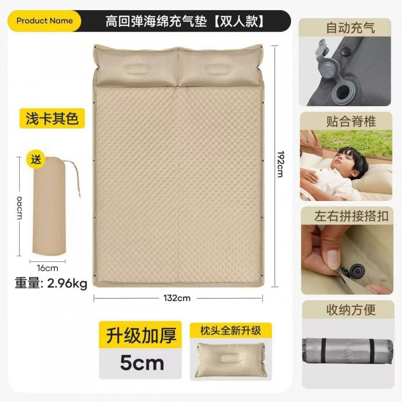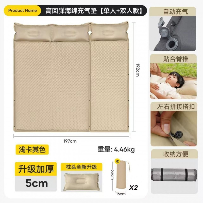Три человека [Светлый хаки] Автоматический надувной матрас 5 см + сумка для хранения
