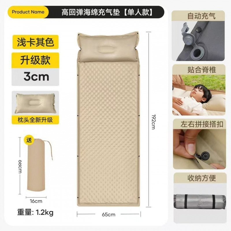Три человека [Светлый хаки] Автоматический надувной матрас 3 см + сумка для хранения