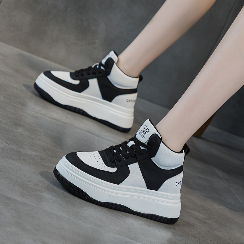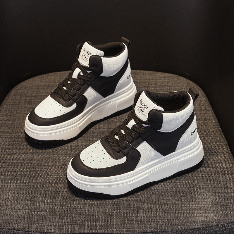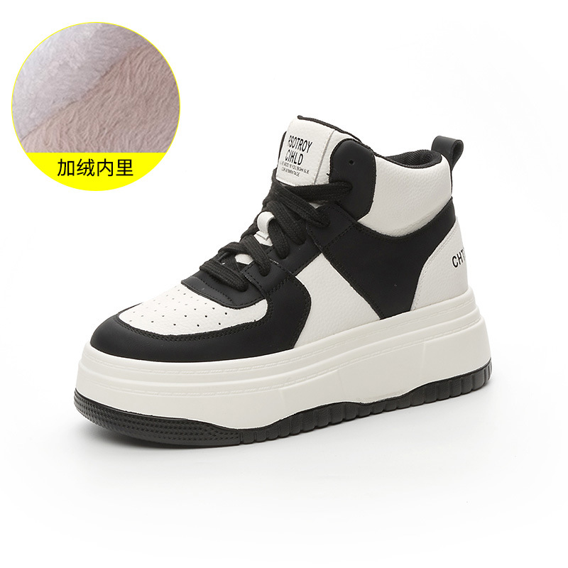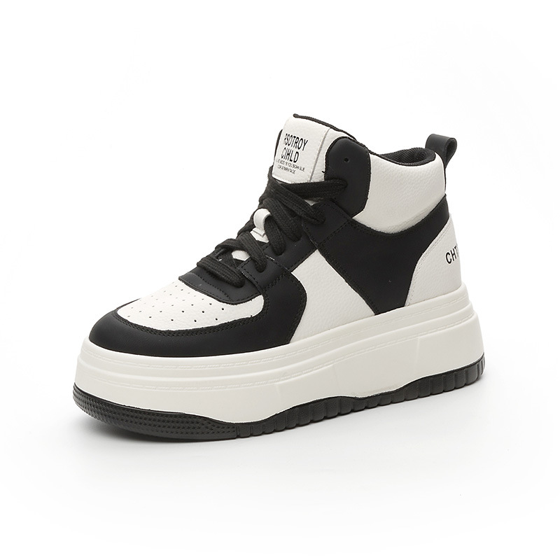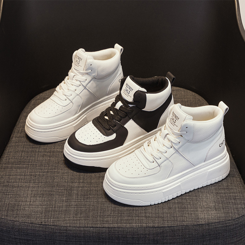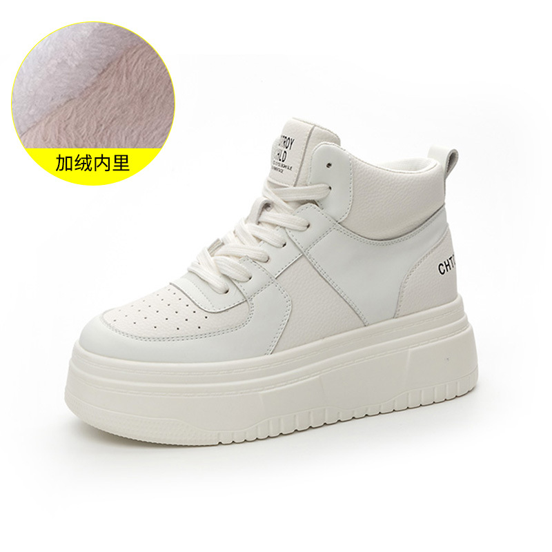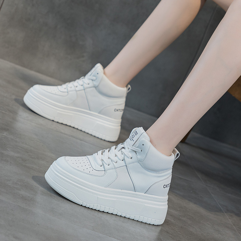 Главная страница > Женские белые кроссовки на скрытой танкетке 2025 из натуральной кожи с круглым носком, лоскутные, на флисовой подкладке, на толстой подошве, повседневная обувь