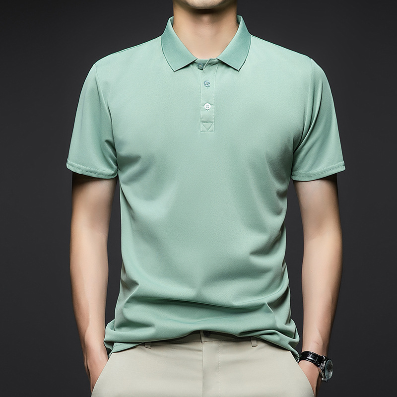 Главная страница > Тридцающая осенняя однотонная футболка из ледяного шелка с короткими рукавами, мужская летняя деловая повседневная универсальная рабочая одежда с лацканами, тонкая мужская p