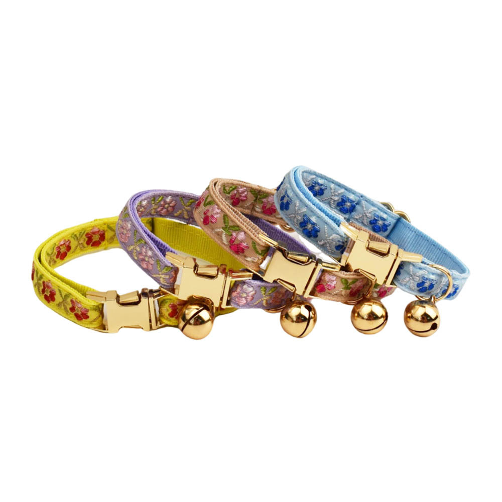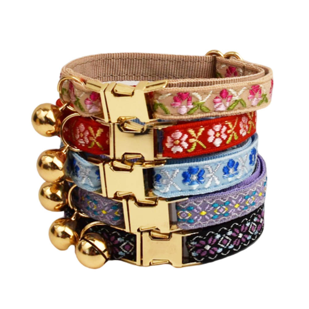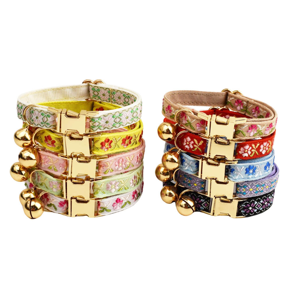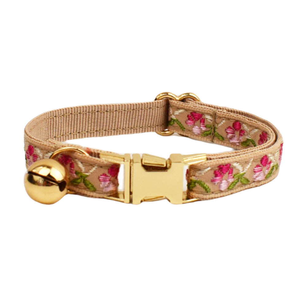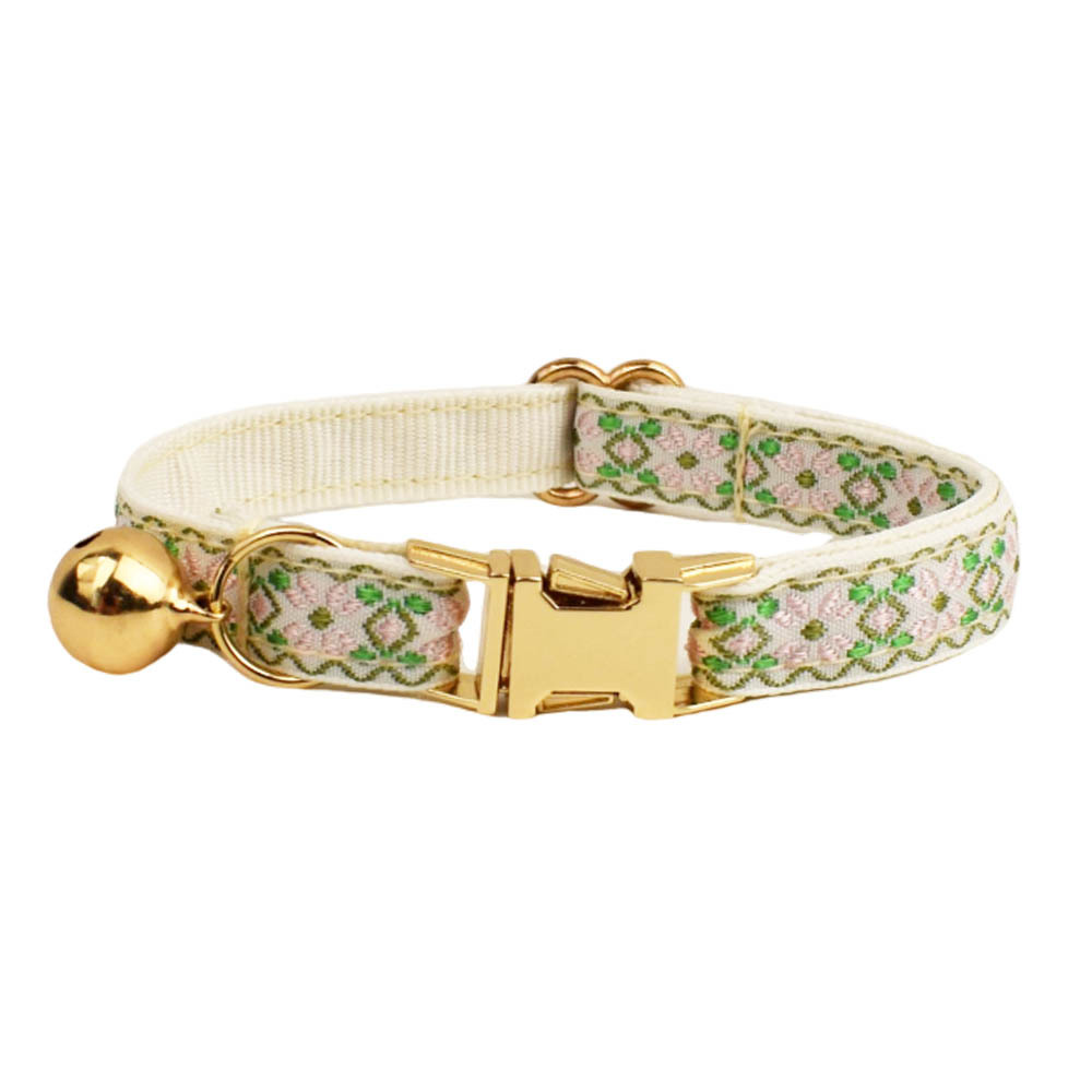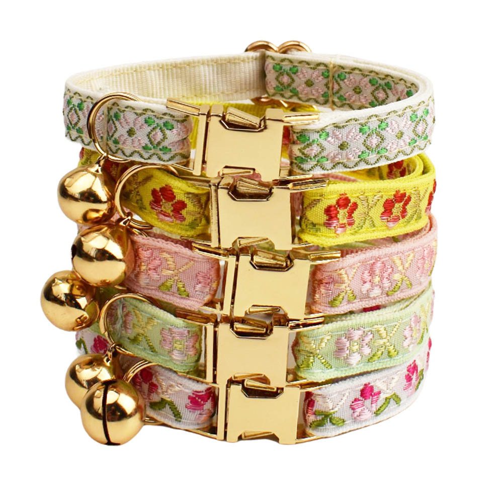 Ошейник для кошек с крестообразной застежкой светло-золотого цвета, жаккардовая вышивка, антиудушающий ошейник для питомцев, аксессуары для животных