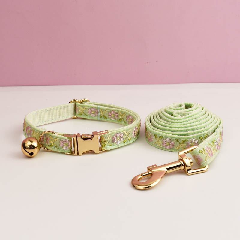 Мятно-зеленое жаккардовое кольцо для кошки + поводок для кошки