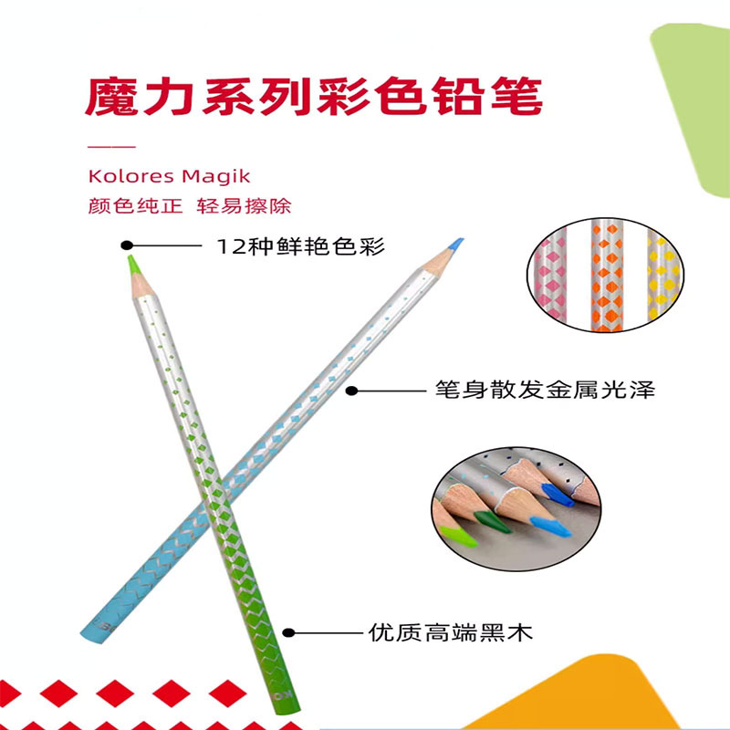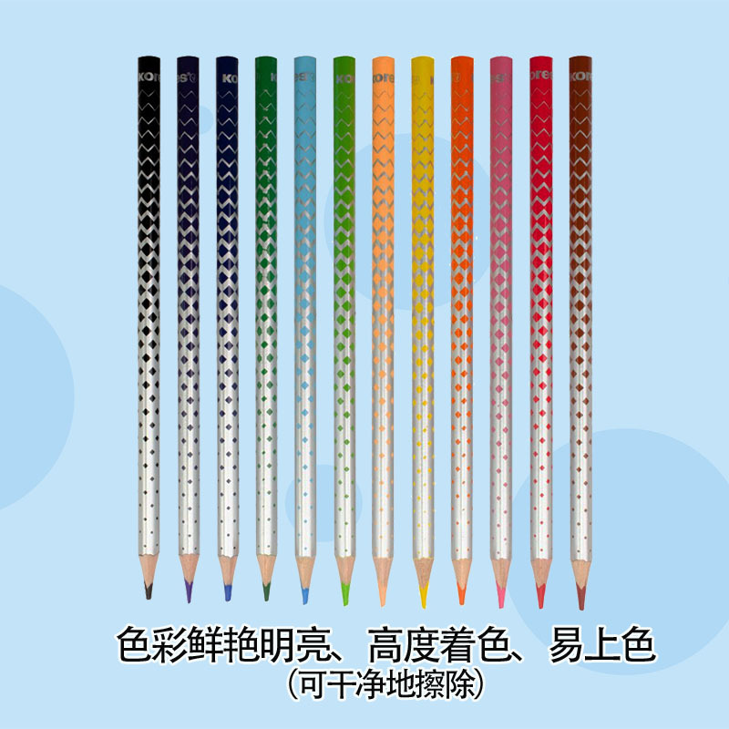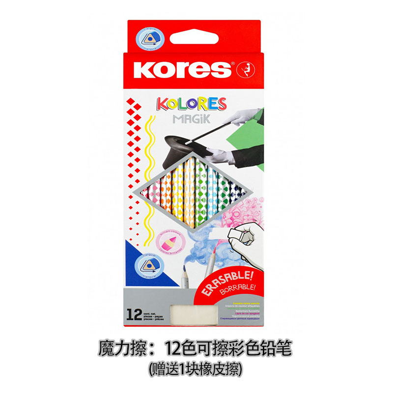 Главная страница > Профессиональные цветные карандаши Kores Magic Eraser с ластиком, треугольный корпус, масляная основа, 12 цветов, стираемые цветные карандаши.