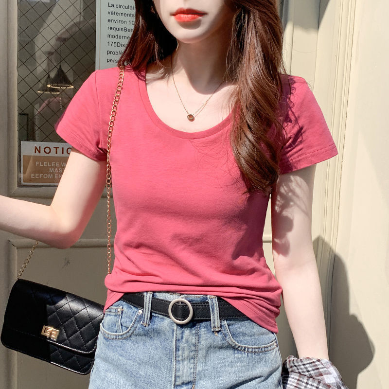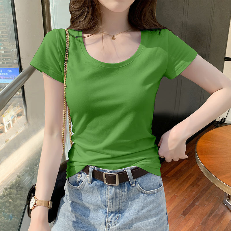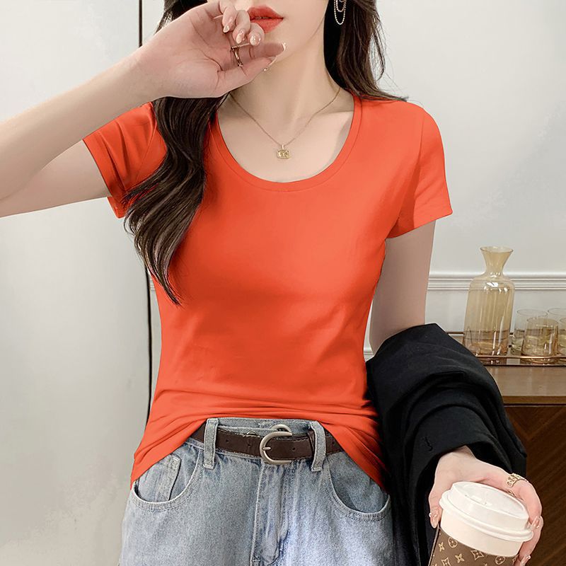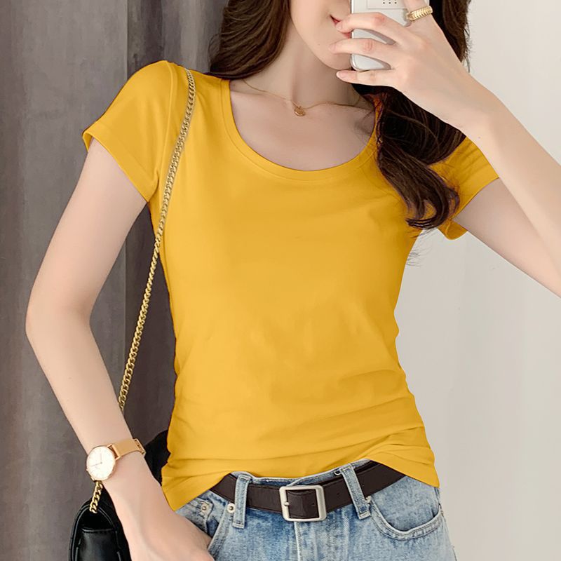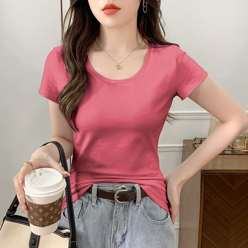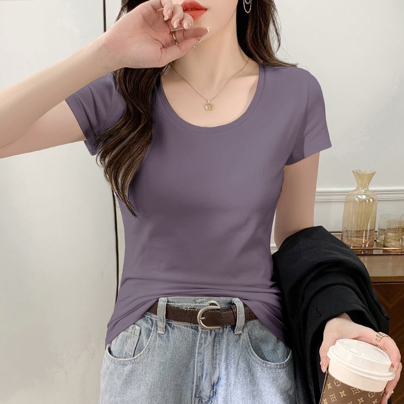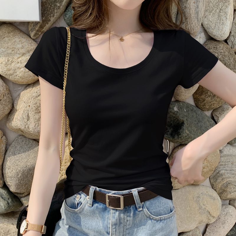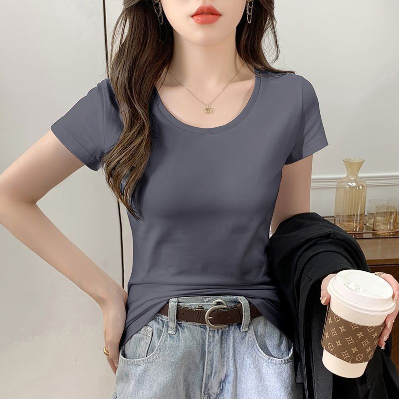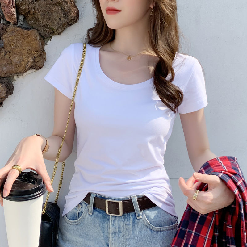 Главная страница > Оптовые белые женские футболки с коротким рукавом, облегающие, новый летний дизайн 2025, большие размеры, топы с коротким рукавом для женщин