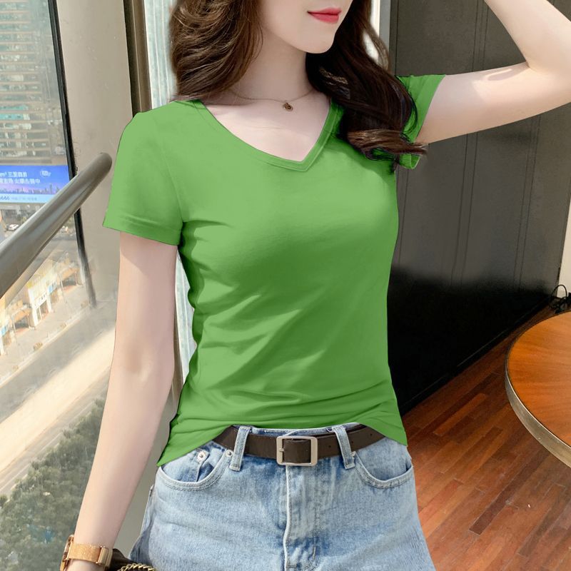 Фруктово-зеленый V-образный вырез с короткими рукавами