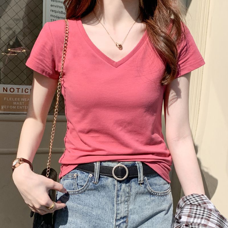 Абрикосовый цвет с V-образным вырезом и короткими рукавами