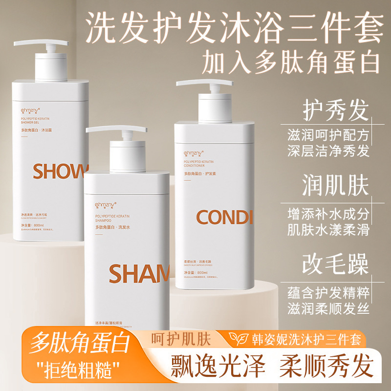 Полипептидный кератиновый шампунь, увлажняющий гель для душа, питательный гладкий кондиционер, набор для семейного ухода и ванны