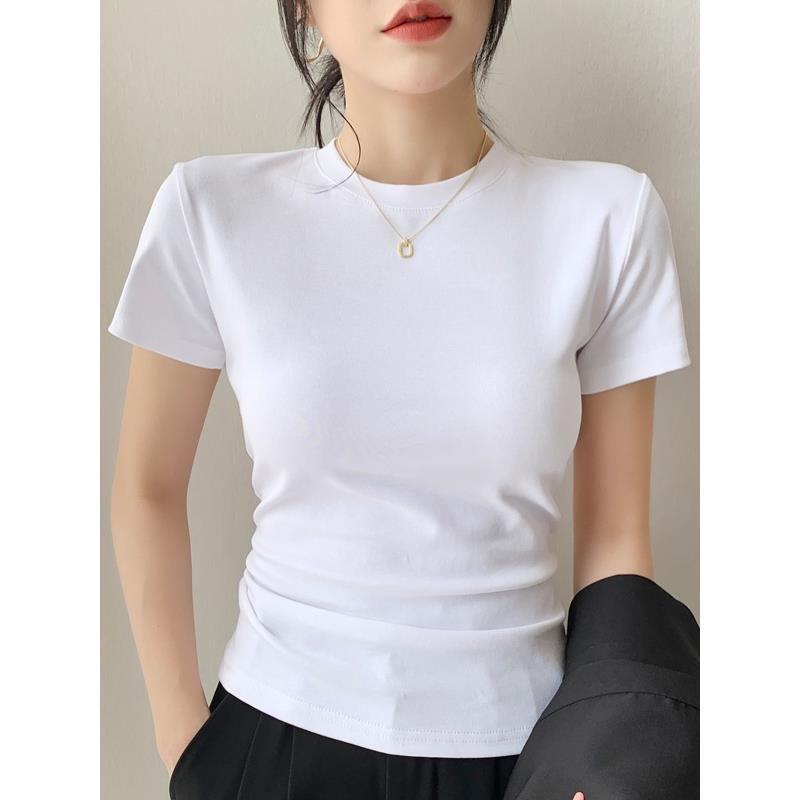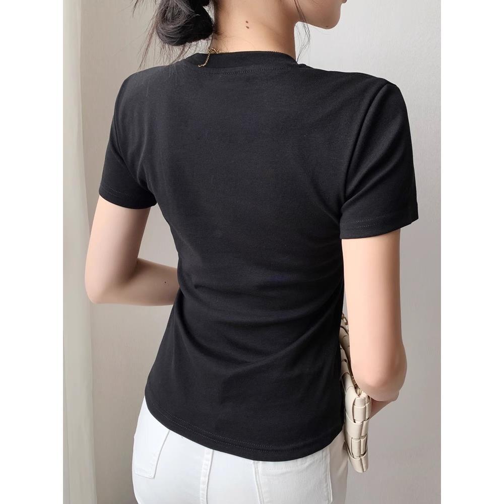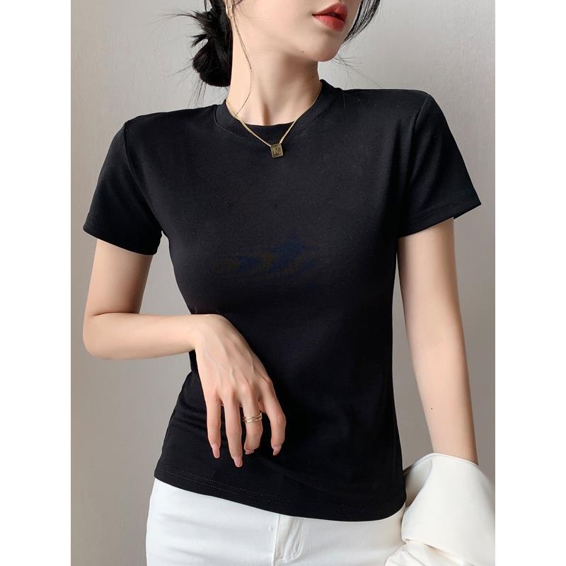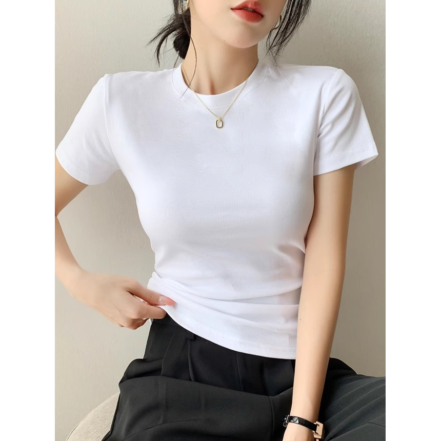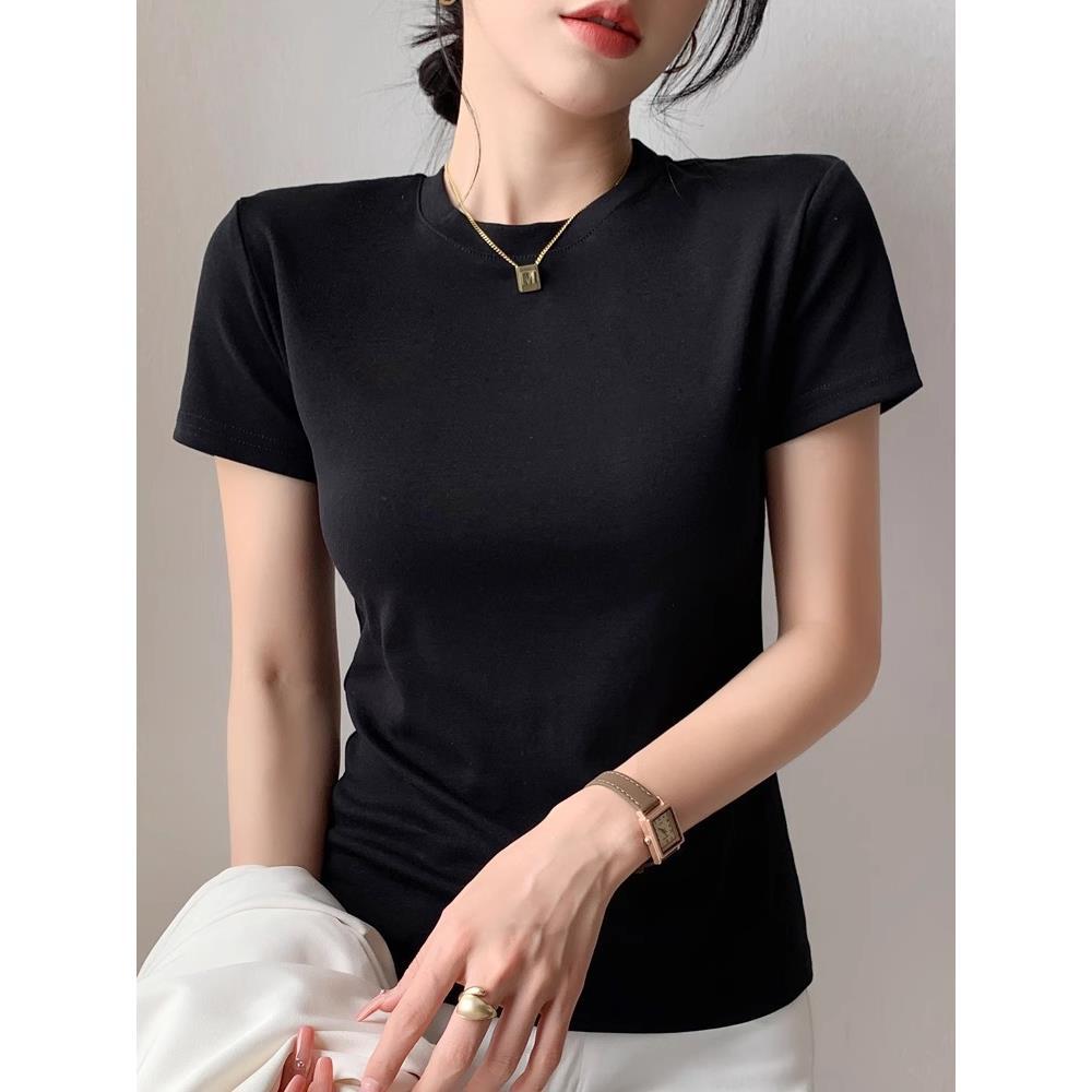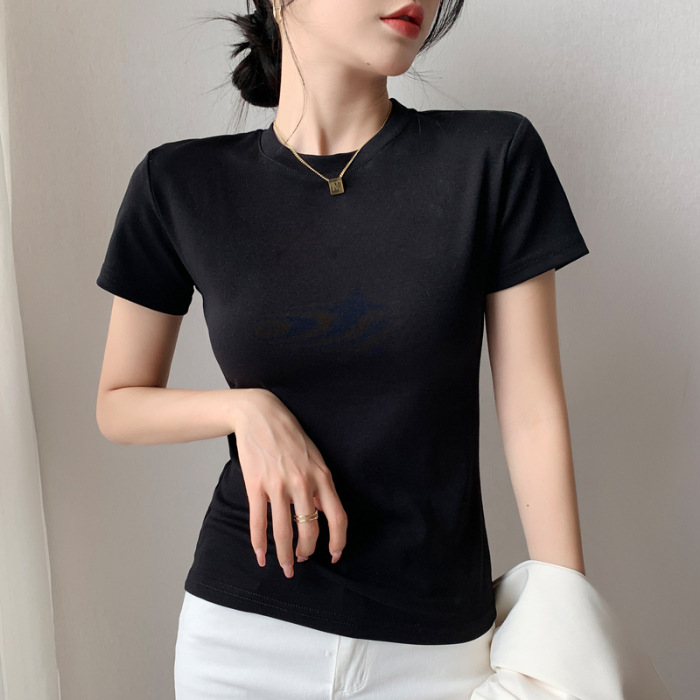 Главная страница > Модный темперамент Футболка с короткими рукавами для женщин 2024 Летняя новая мода для тонких тонких и сплошных топов с круглым вырезом in
