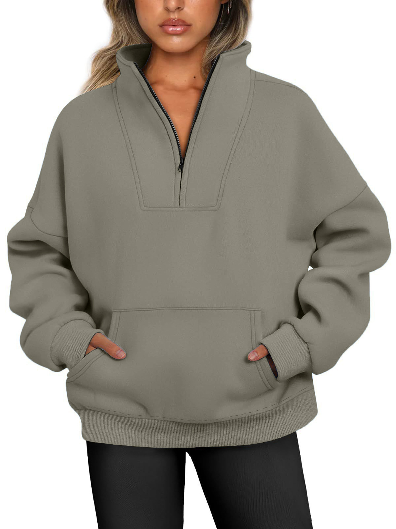Главная страница > 2023 Осенне-зимний воротник, однотонная толстовка с карманом на молнии, Женский Повседневный свободный флисовый топ с резьбой
