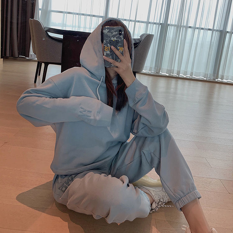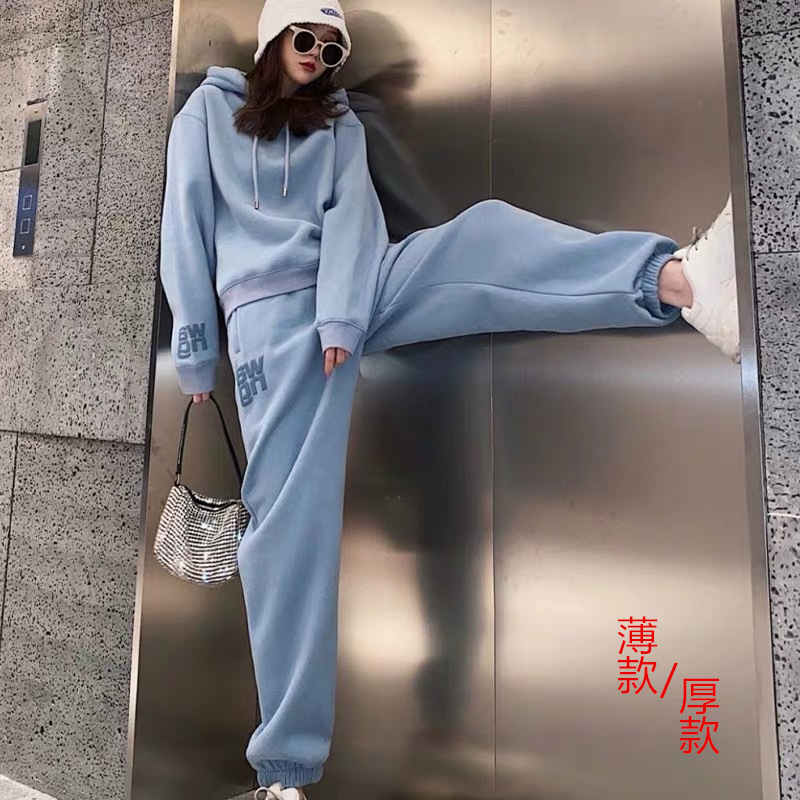 Главная страница > Тонкий/толстый спортивный костюм женский весенне-осенне-зимний СВОБОДНЫЙ Модный повседневный студенческий комплект из двух предметов для бега в Корейском стиле