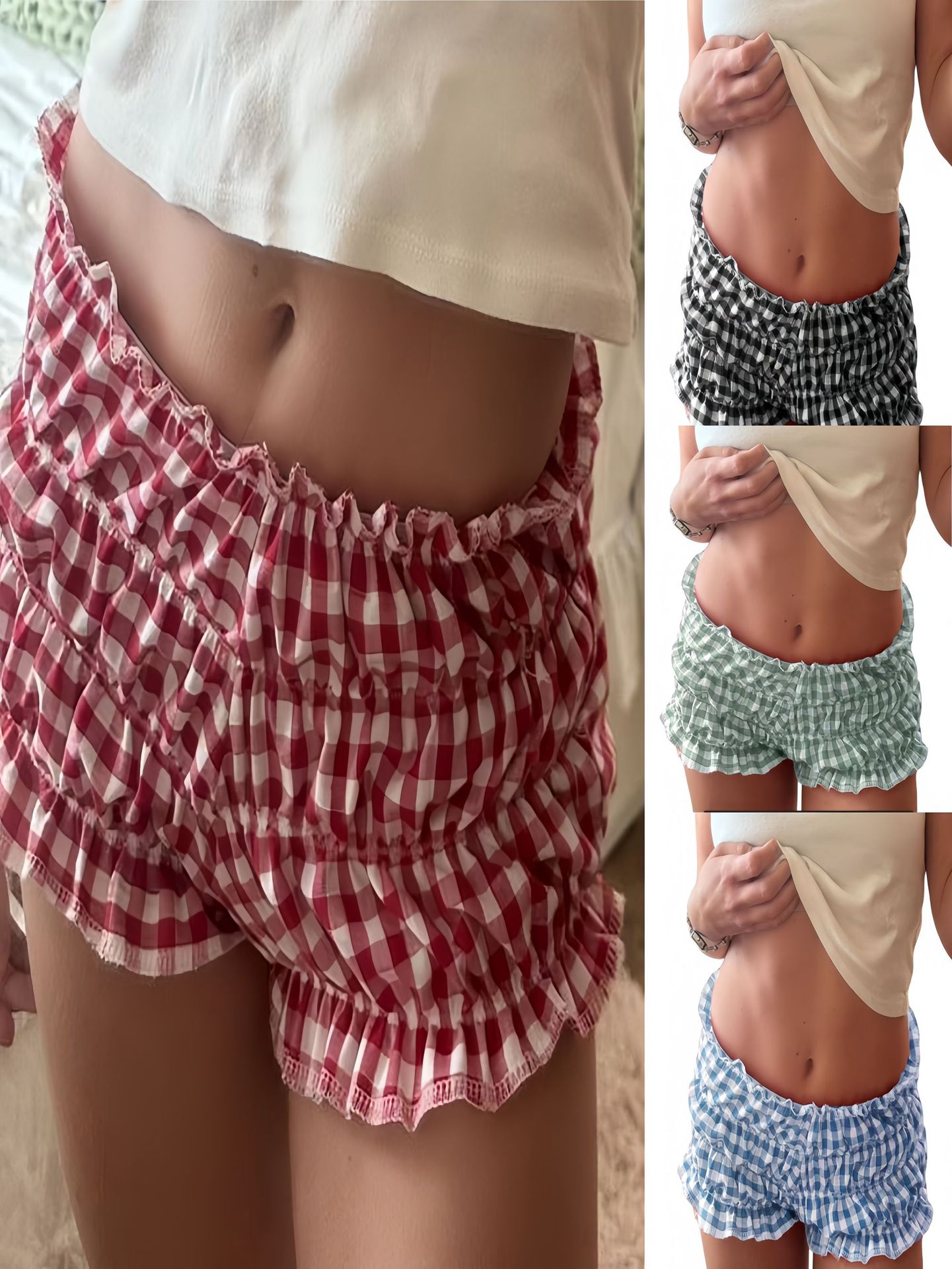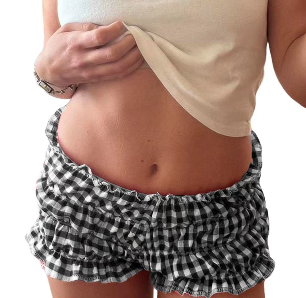 Главная страница > Трансграничные женские шорты Европейские и американские повседневные шорты в клетку модные оборки сексуальные шорты с низкой талией супер короткие