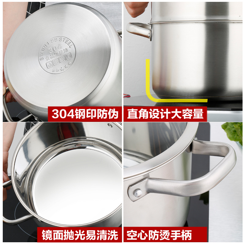 Главная страница > Горшок из нержавеющей стали 304 Пищевая утолщенная индукционная плита Универсальный суповой горшок Бытовая Пароварка с пароваркой Горшок для тушения большой емкости