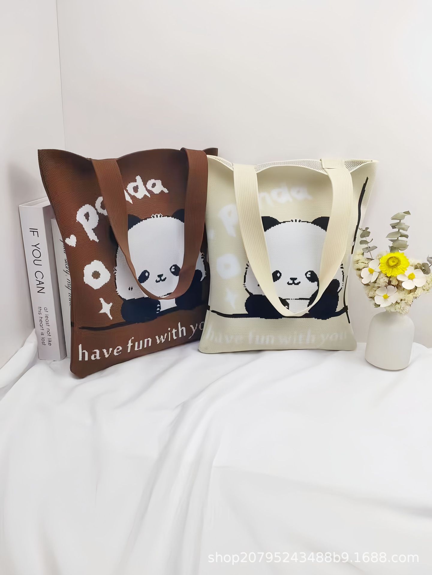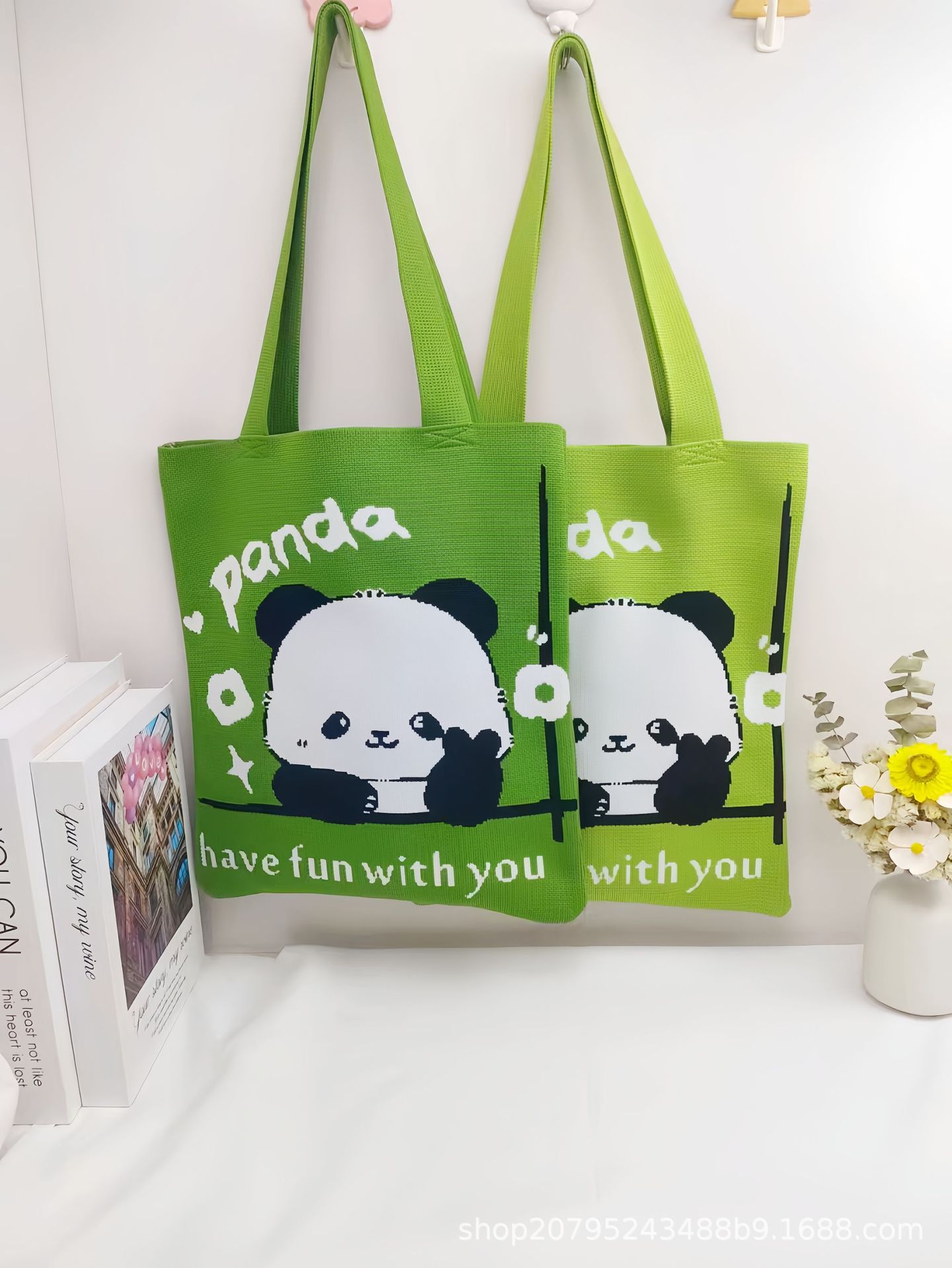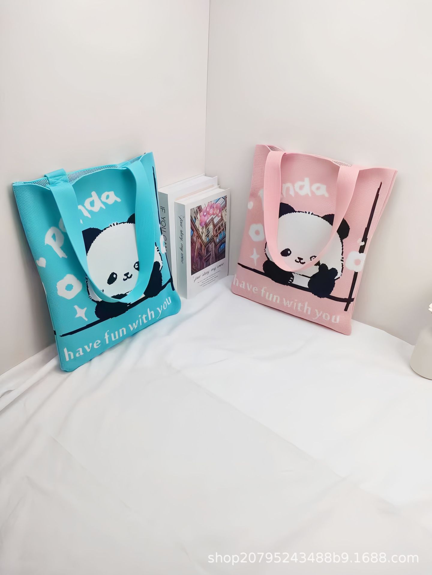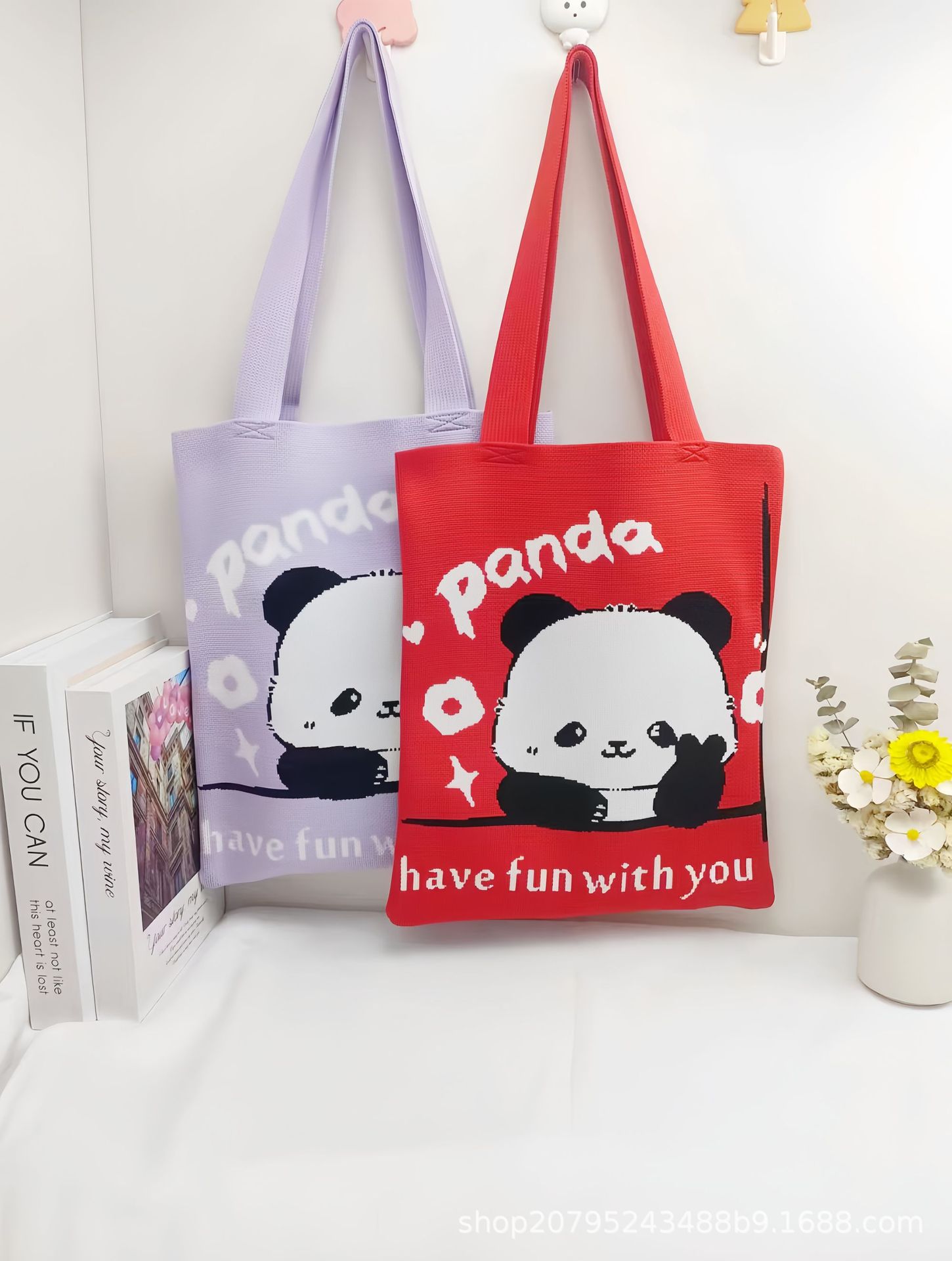 Оптовая оптовая продажа большой емкости трикотажная шерстяная сумка милая панда ланч-бокс сумка подарочная сумка универсальная сумка для отдыха