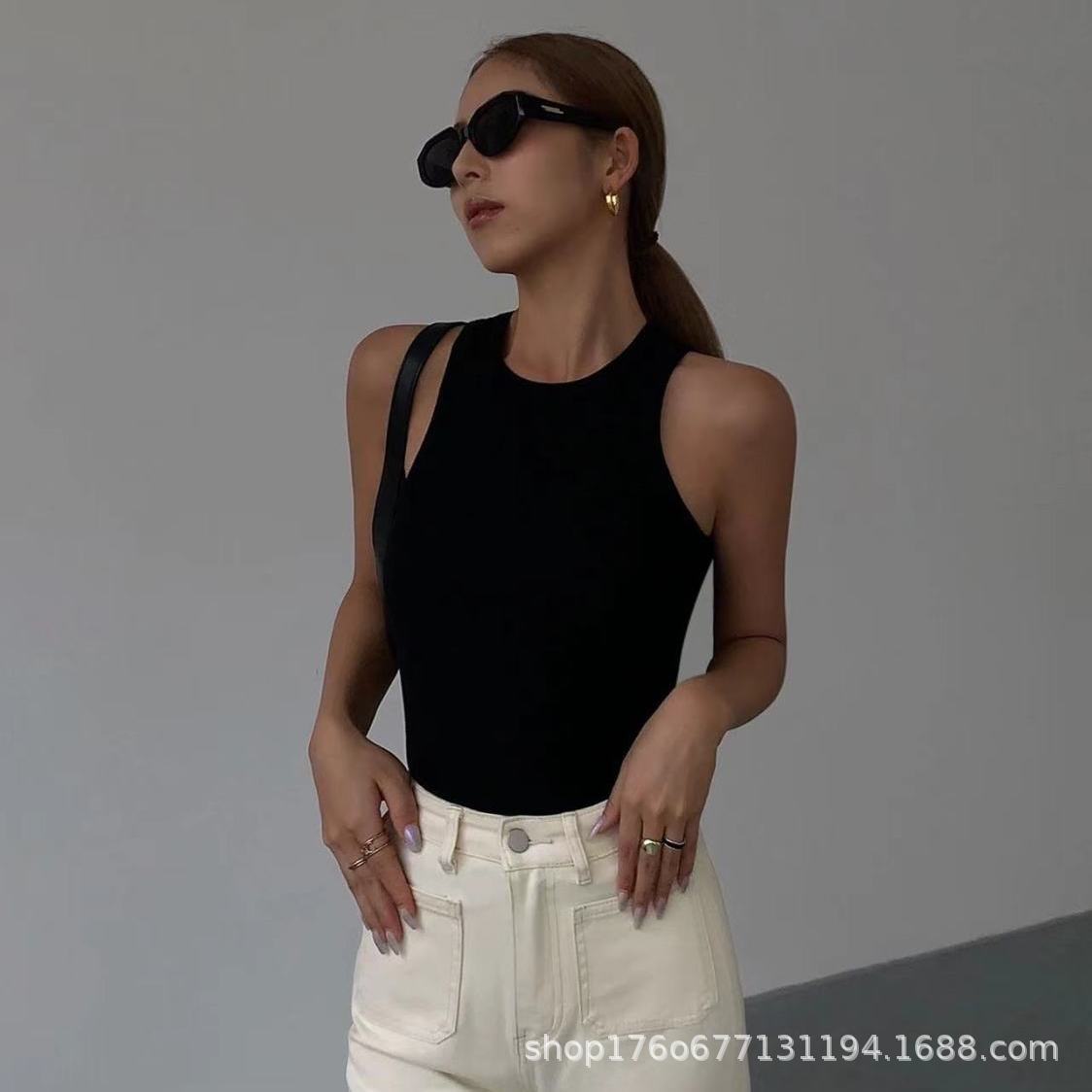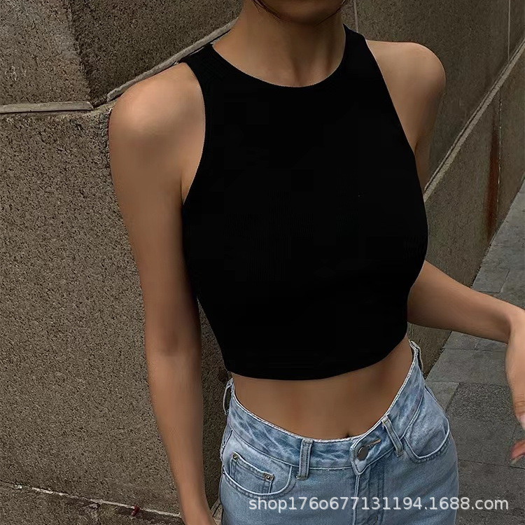 Главная страница > Модная короткая черная майка в рубчик для женщин, летняя верхняя одежда без рукавов, топ