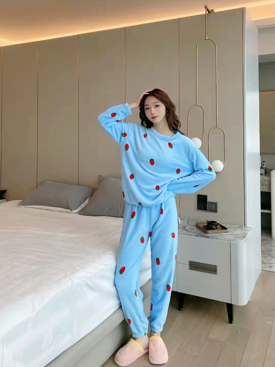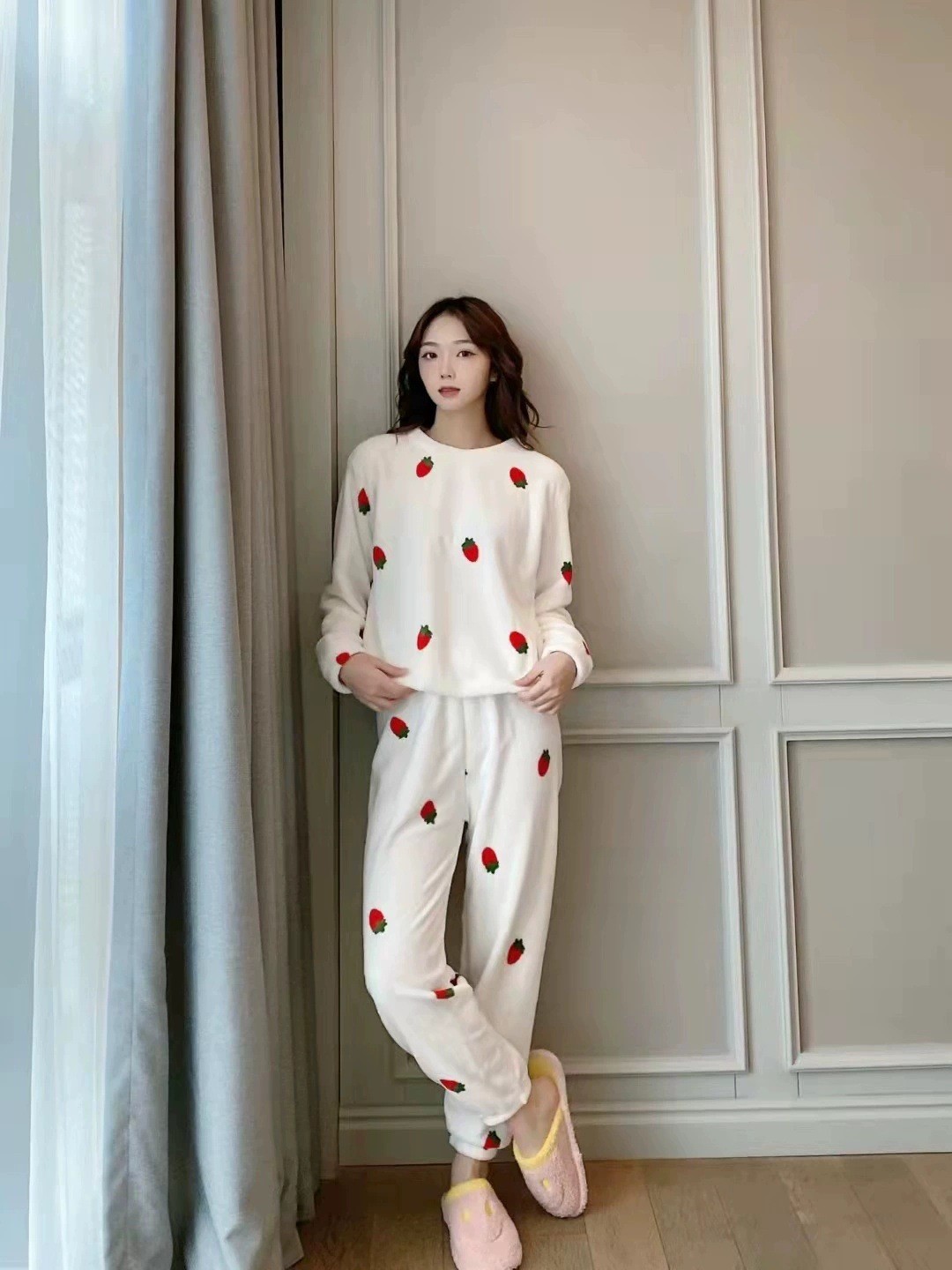 Главная страница > Клубничный персиковый принт коралловый бархат теплый набор для женщин зимой