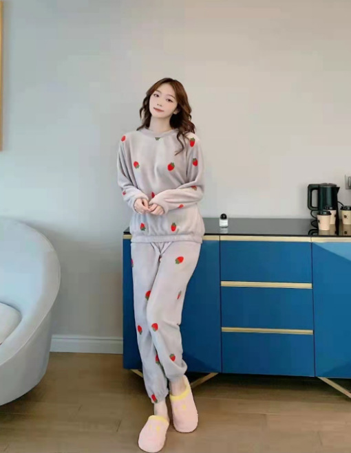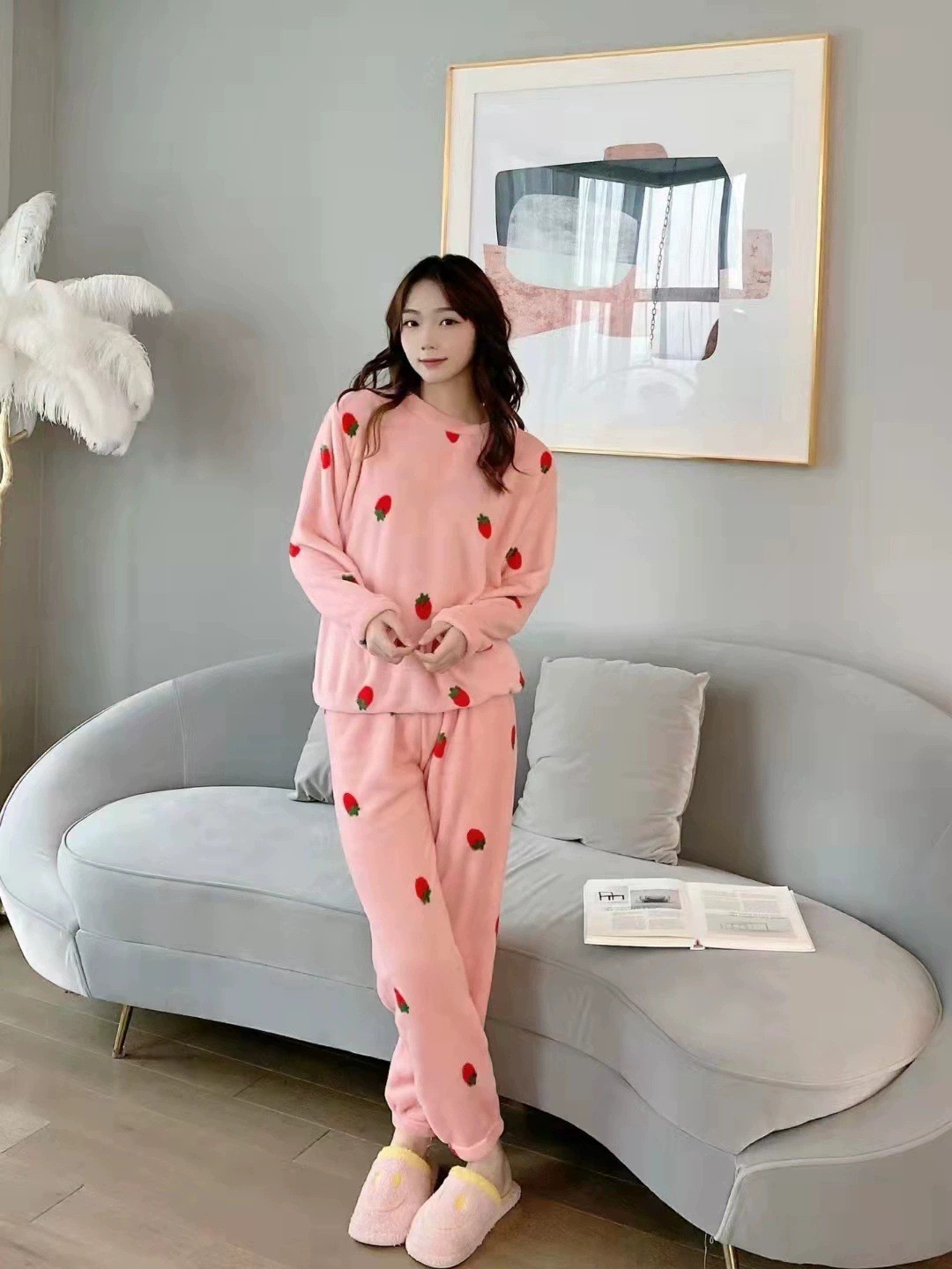 Клубничный персиковый принт коралловый бархат теплый набор для женщин зимой