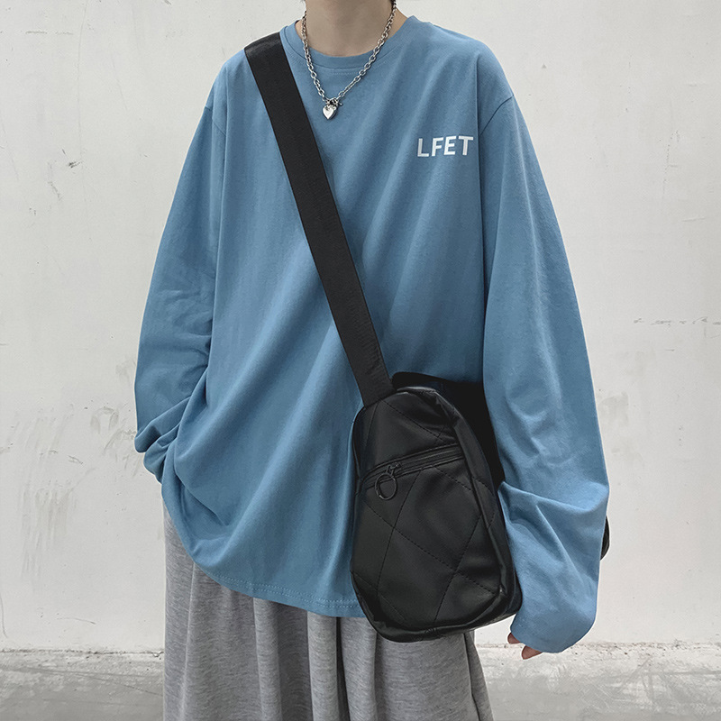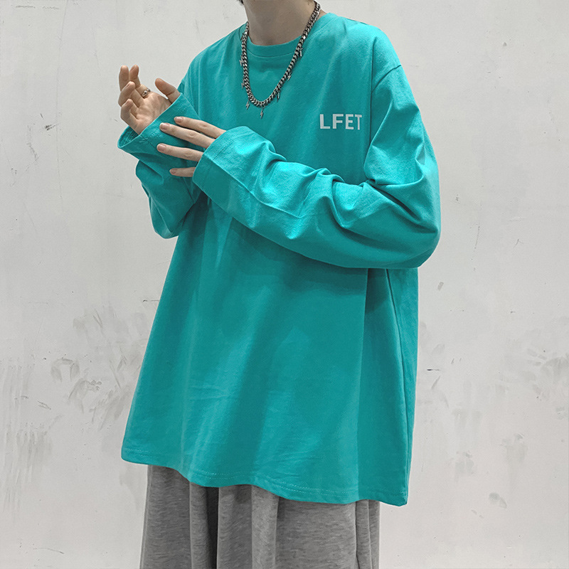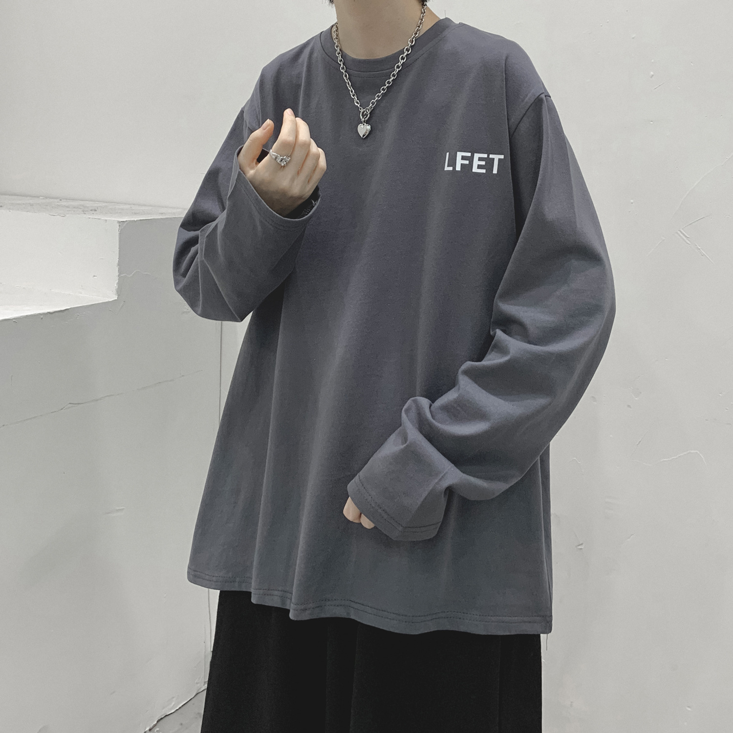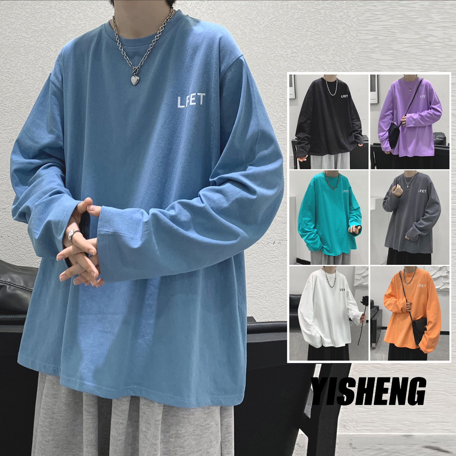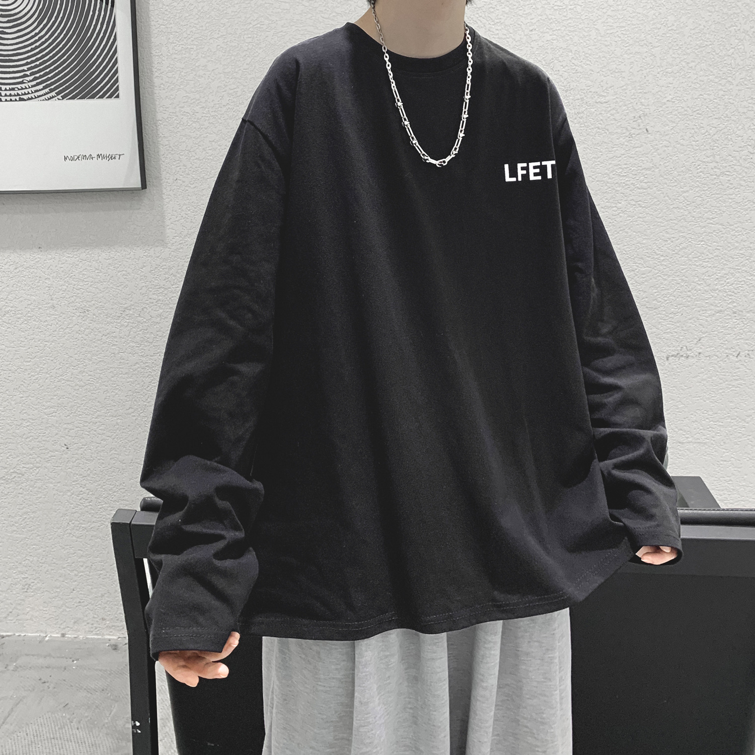 Главная страница > Футболка с длинными рукавами, Мужская весенне-осенняя модная свободная Базовая рубашка для высоких улиц, осенняя одежда в гонконгском стиле, модный брендовый свитер с круглым вырезом