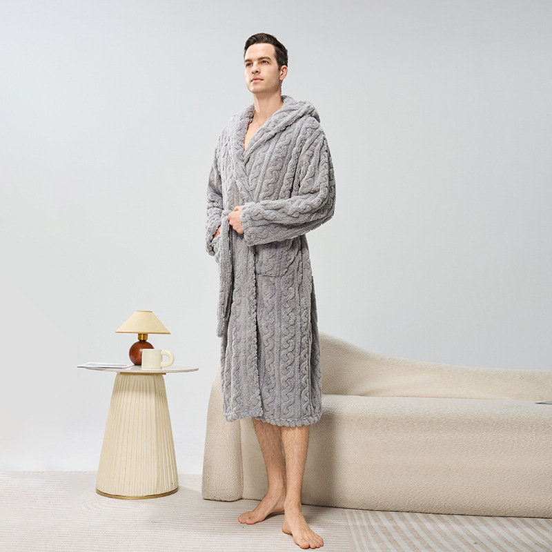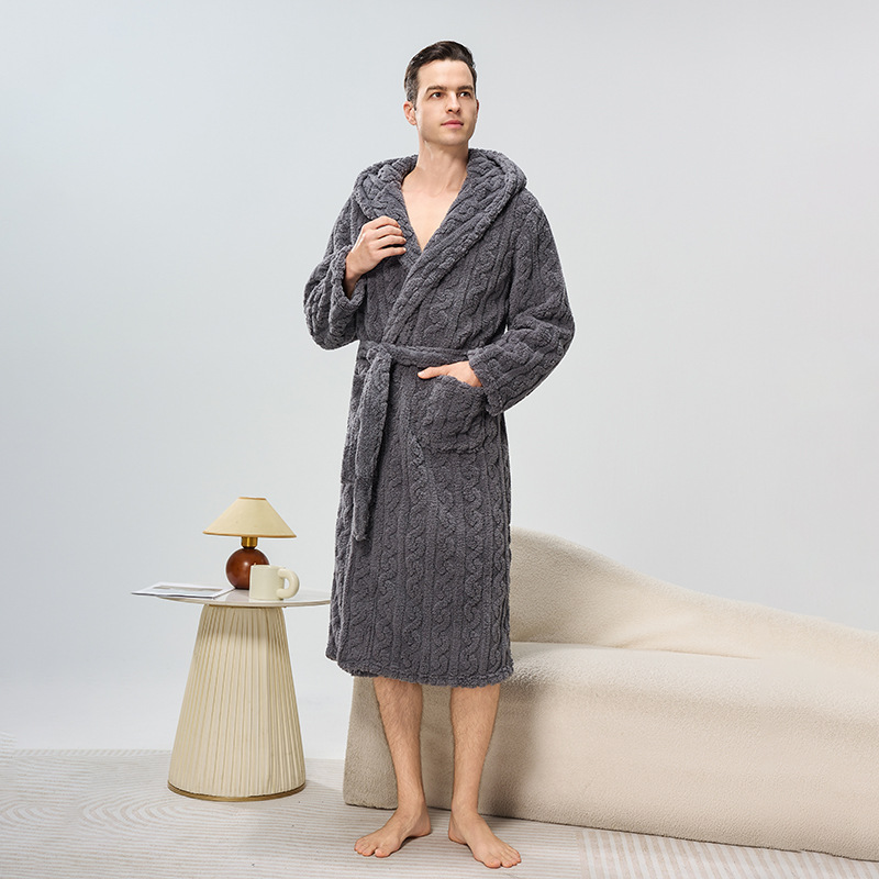 Главная страница > Готовые мужские и женские халаты, утолщенные жаккардовые бархатные мужские и женские ночные рубашки, осенние и зимние теплые халаты, длинные халаты с капюшоном