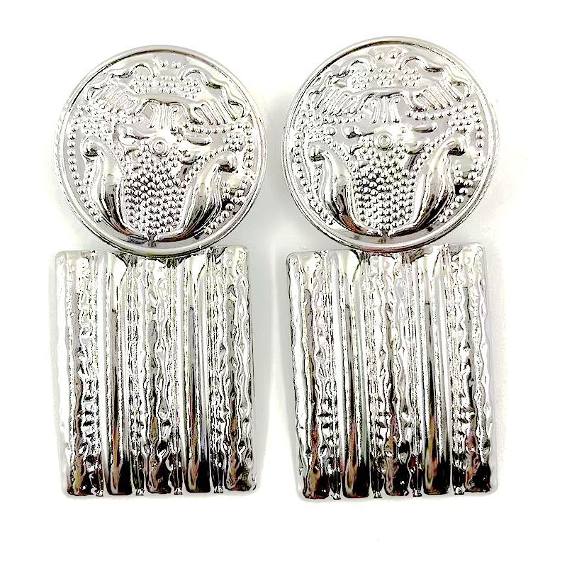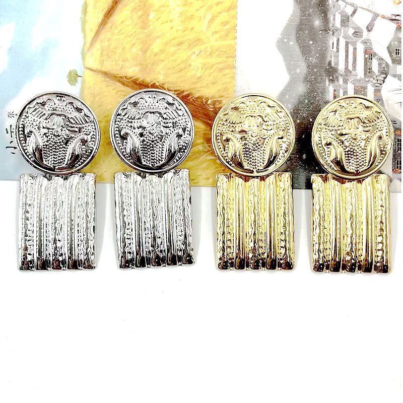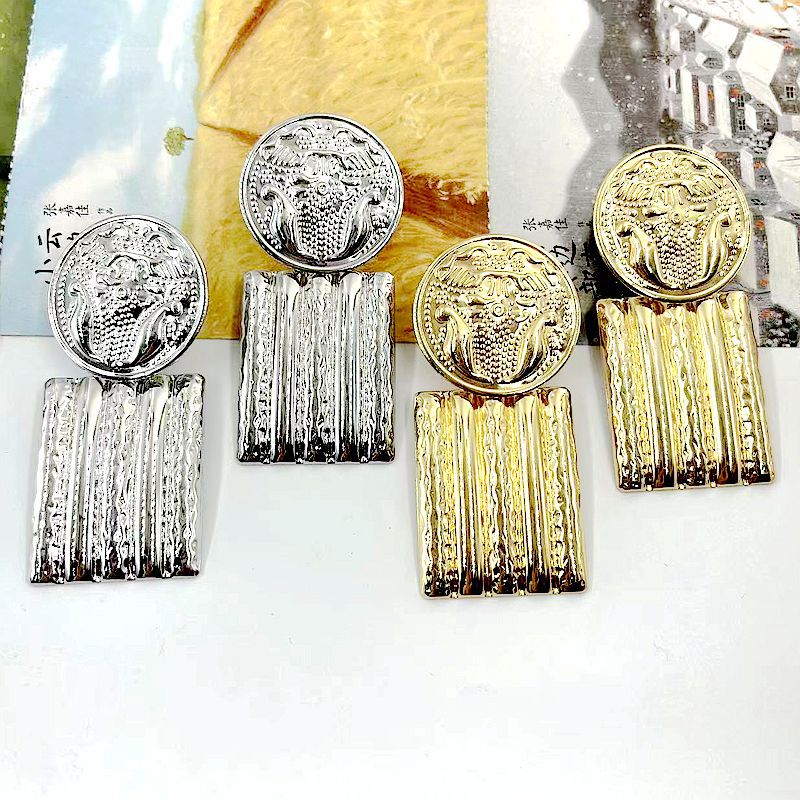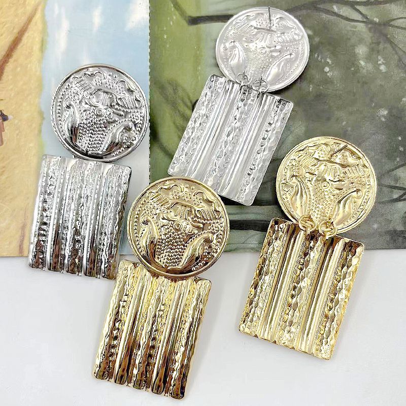 Европейские и американские трансграничные серьги, металлические серьги в стиле ретро в придворном стиле, геометрические трехмерные резные круглые значки, длинные серьги с квадратным узором