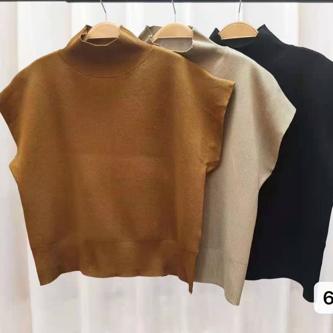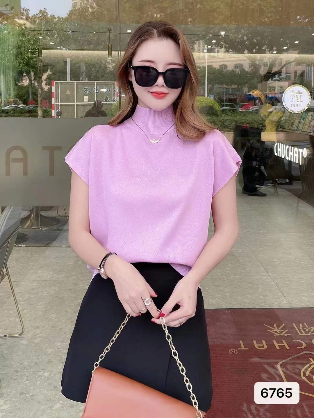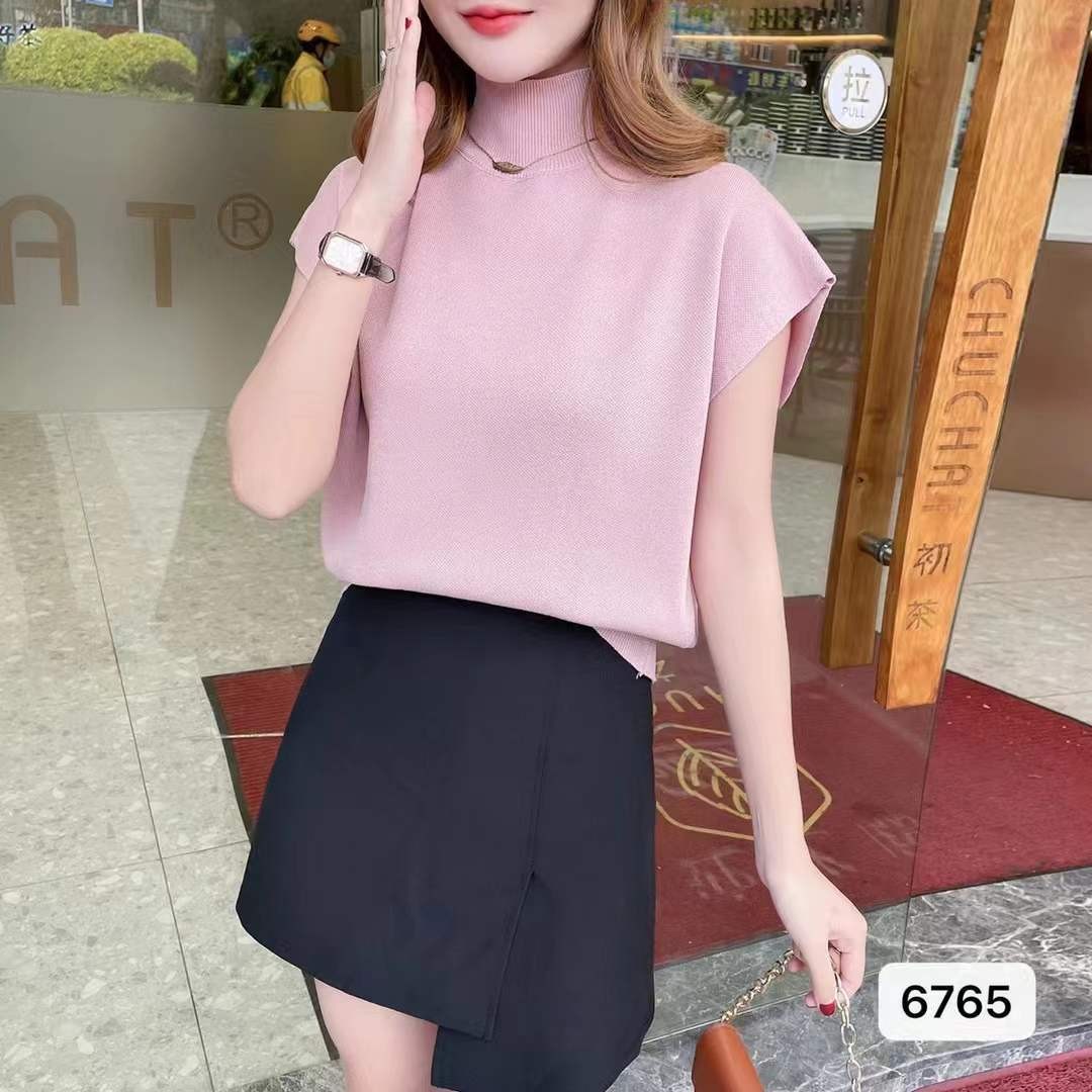 Главная страница > 2025 корейская версия нового полувысокого воротника трикотажный жилет футболка женская простая свободная короткая рубашка с короткими рукавами летом