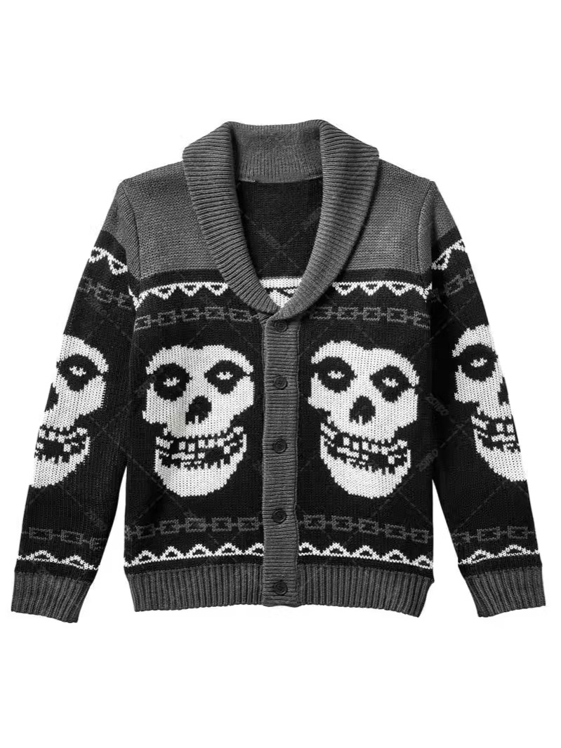 2025 Европейский и американский трансграничный осенне-зимний мужской и женский персонализированный модный свободный вязаный кардиган на пуговицах с лацканами Y2K оптом