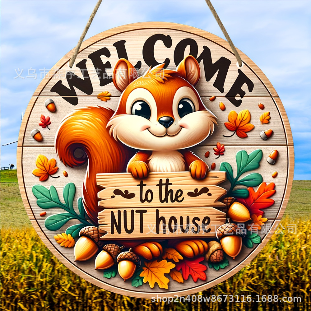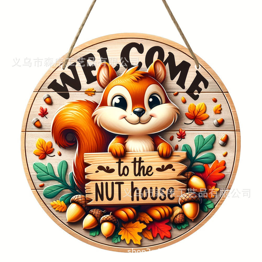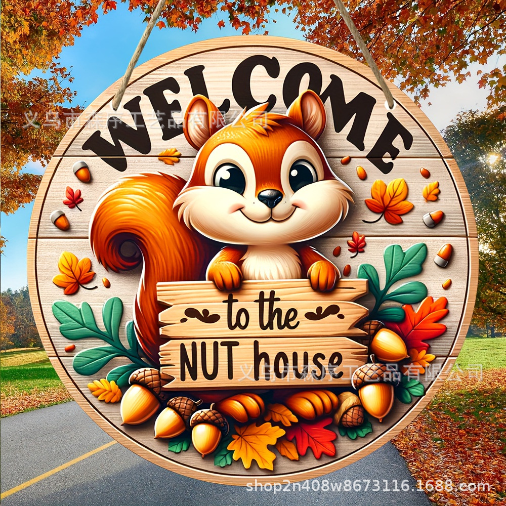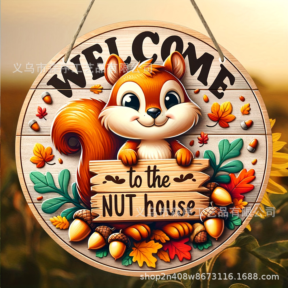 1 шт., очаровательная белка, приветственный знак-круглая фанера, домашний сад, кафе, фермерский дом, осенний декор, подвесная табличка