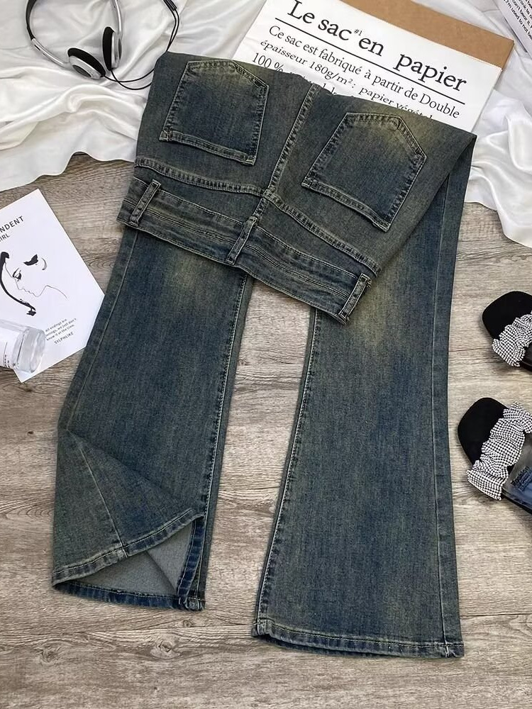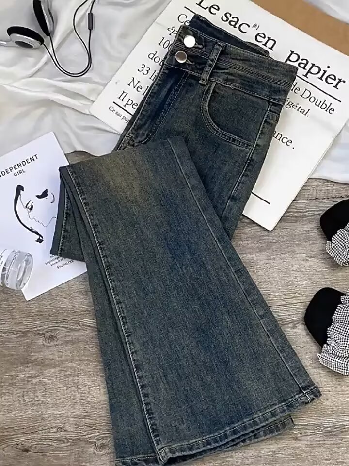 Главная страница > Новые цементно-серые расклешенные джинсы для женщин 2025 года, высокая талия, утягивающие, модные, универсальные, миниатюрные, клеш, в пол.
