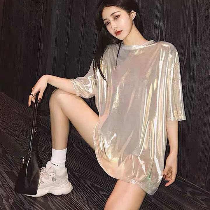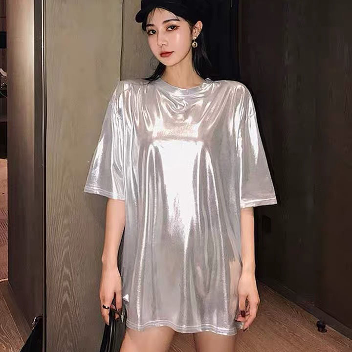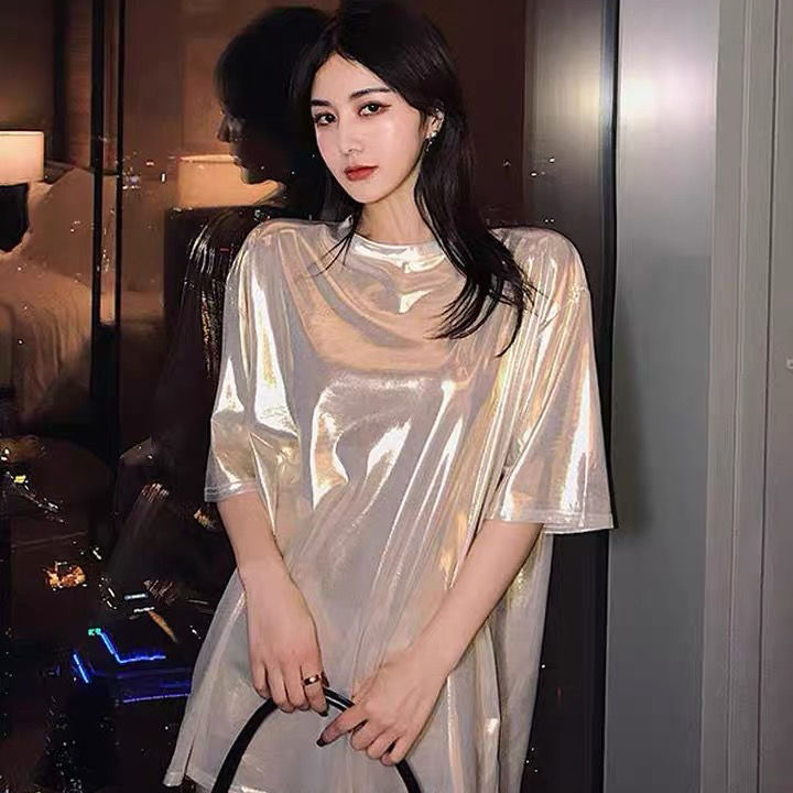 Главная страница > Большая европейская версия блестящих футболок женская весна 2025 новая модная модель средней и длинной свободной bf с короткими рукавами студенческий хип-хоп