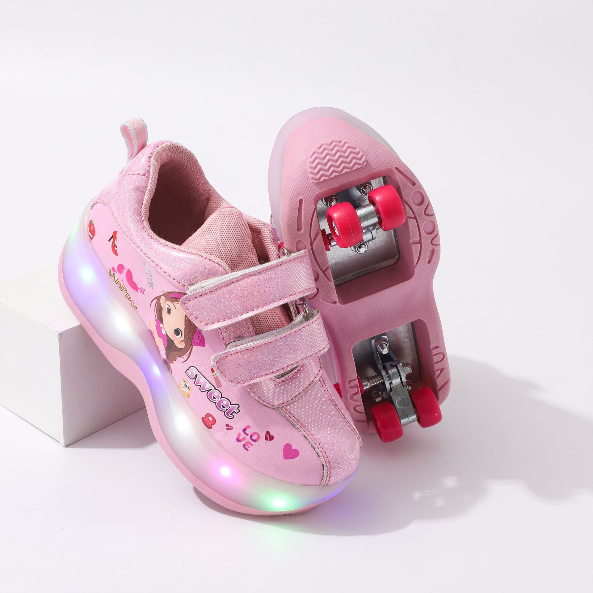 Новые регулируемые детские роликовые коньки, обувь Heelys с героями мультфильмов, скрытые роликовые коньки, износостойкая модная обувь на четырех колесах, модель с зарядкой