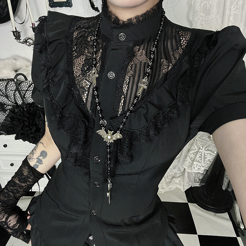 CF25145 кружевной топ с короткими рукавами и вырезами, летняя новая сексуальная тонкая универсальная рубашка для женщин
