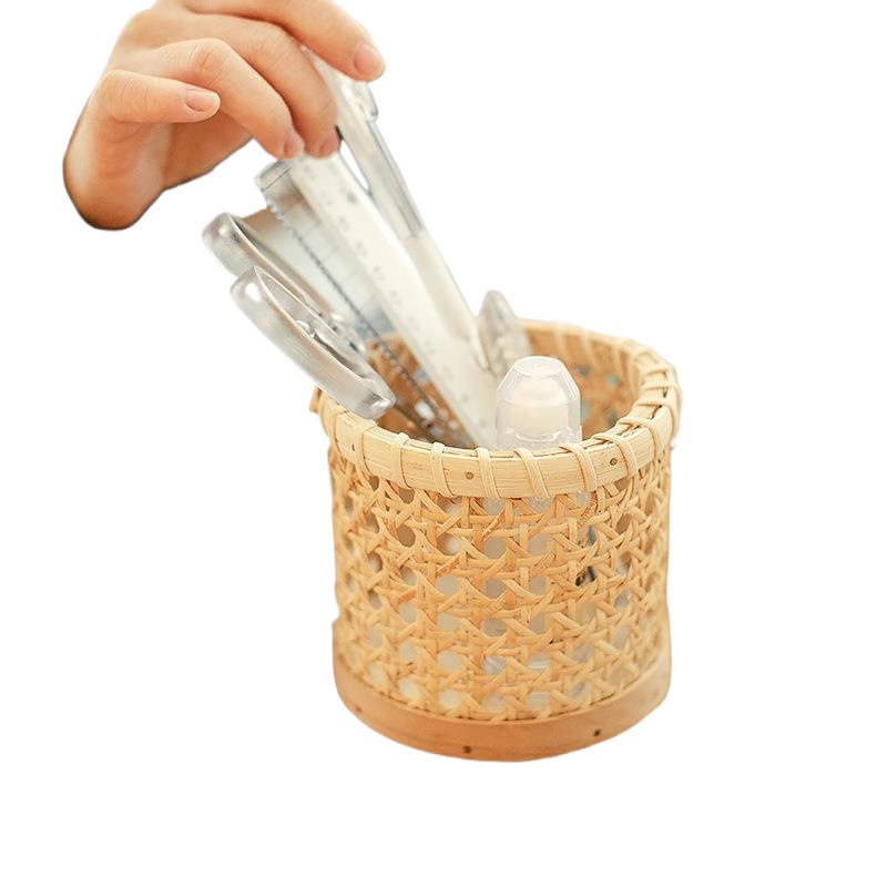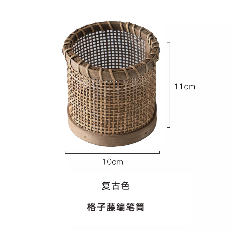 Главная страница > Ретро ротанговый деревянный плетеный держатель для ручек, настольная корзина для хранения, офисные канцелярские принадлежности, расческа, коробка для хранения кистей для макияжа, аптечка