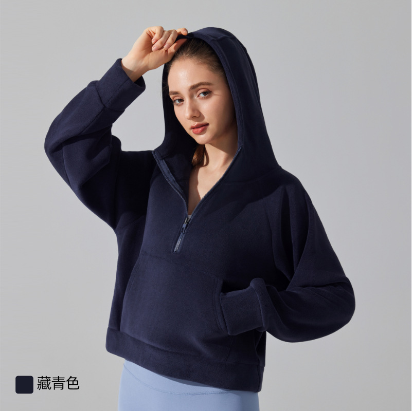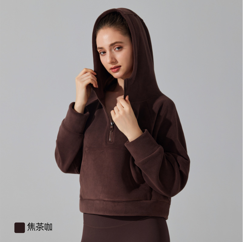 Главная страница > Осенний и зимний бархатный толстый фитнес-свитер теплый с длинными рукавами полузастежкой-молнией