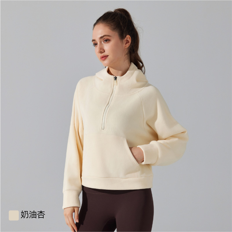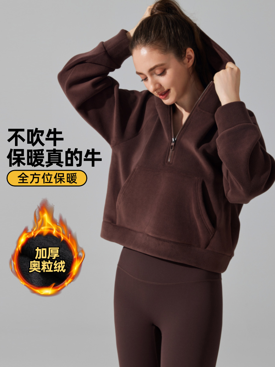 Осенний и зимний бархатный толстый фитнес-свитер теплый с длинными рукавами полузастежкой-молнией
