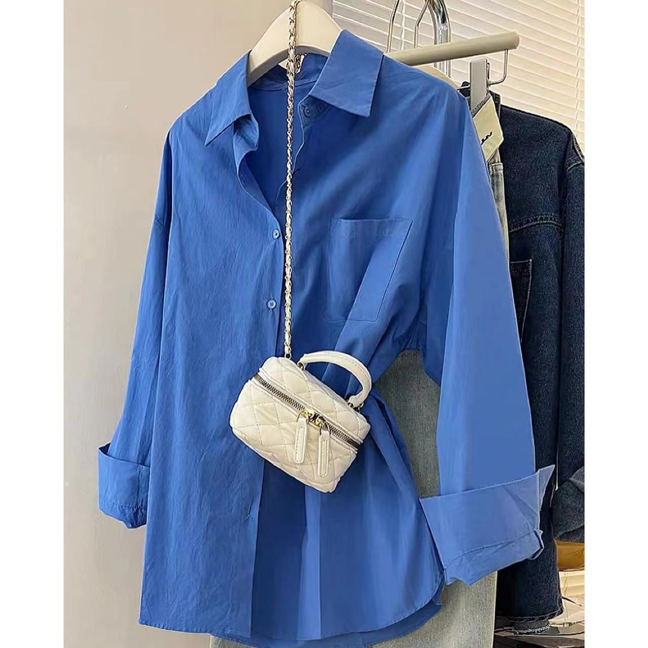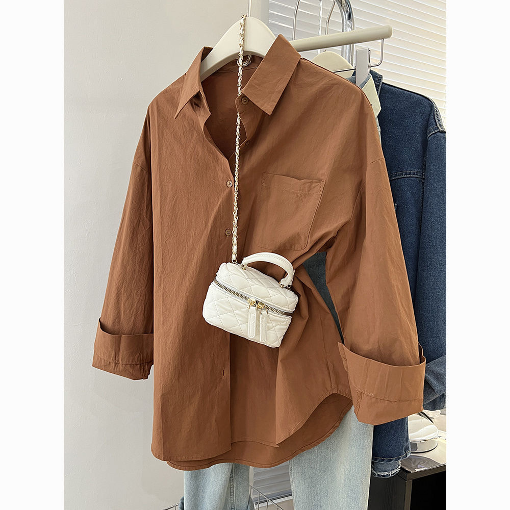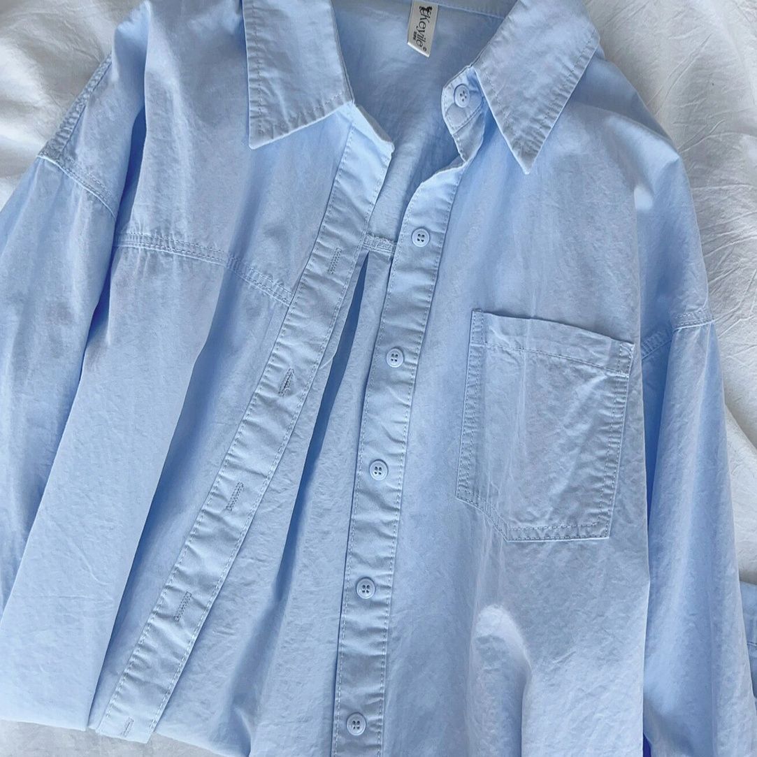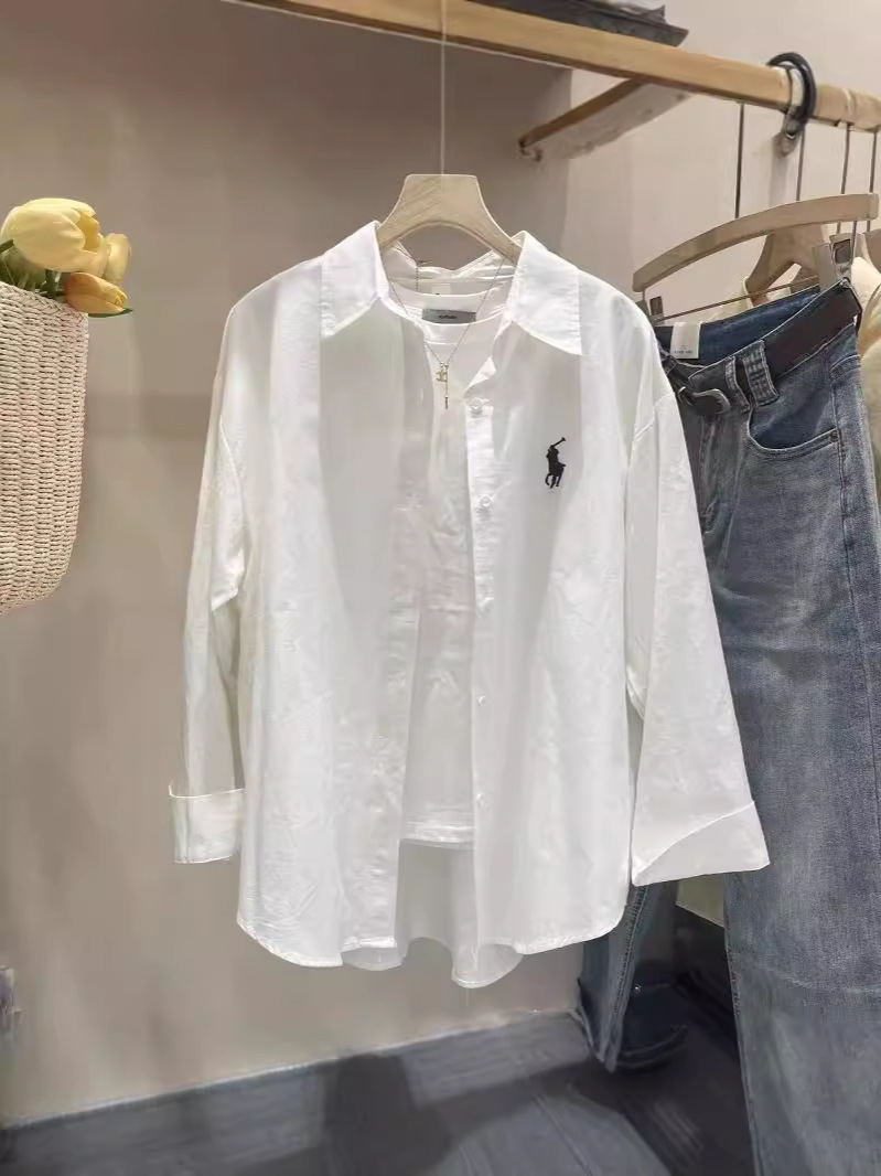 Главная страница > Женская белая рубашка из чистого хлопка в корейском стиле, новая модель 2025 года, нишевая верхняя одежда, свободного кроя, с длинными рукавами и небольшой вышивкой.
