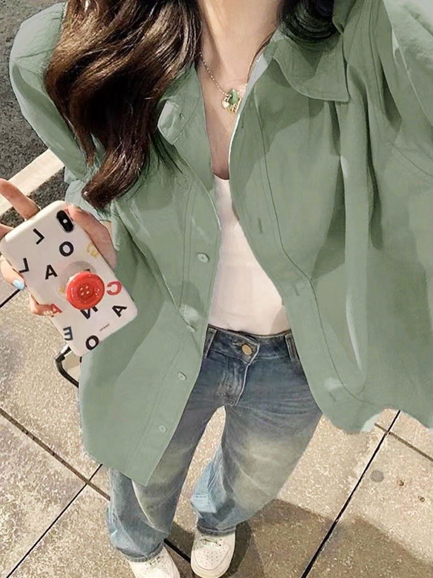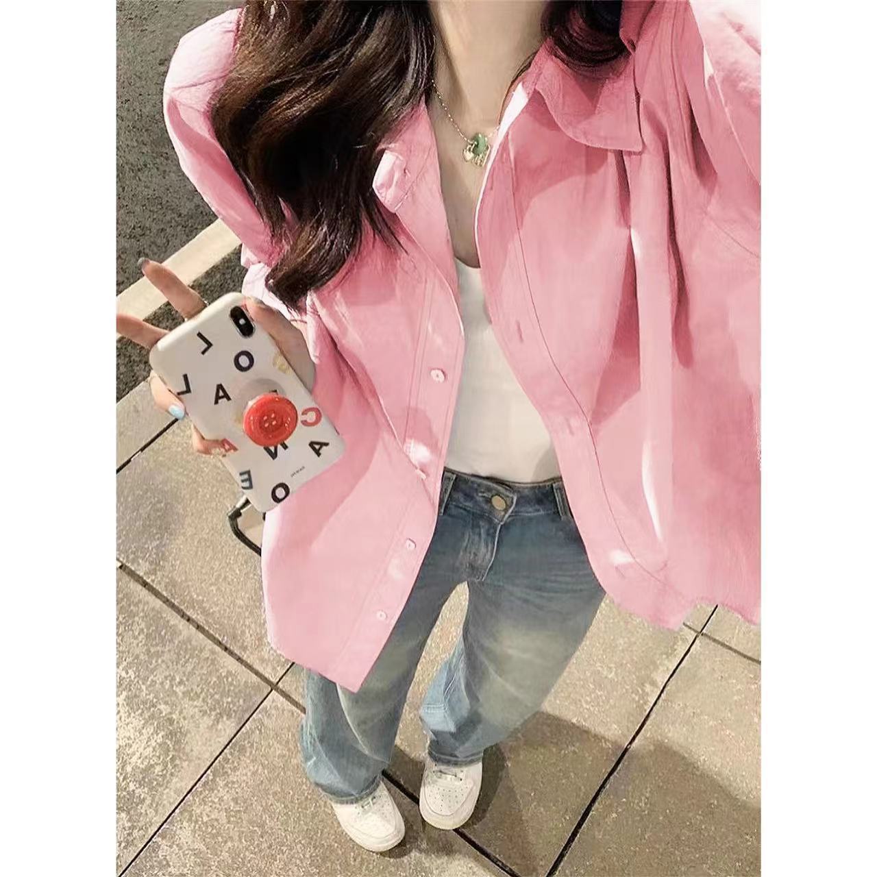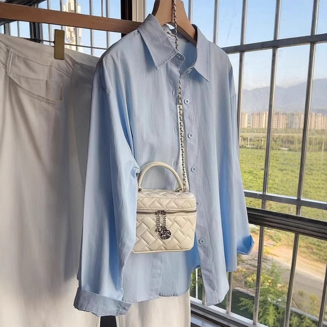 Главная страница > Женская белая рубашка из чистого хлопка в корейском стиле, новая модель 2025 года, нишевая верхняя одежда, свободного кроя, с длинными рукавами и небольшой вышивкой.