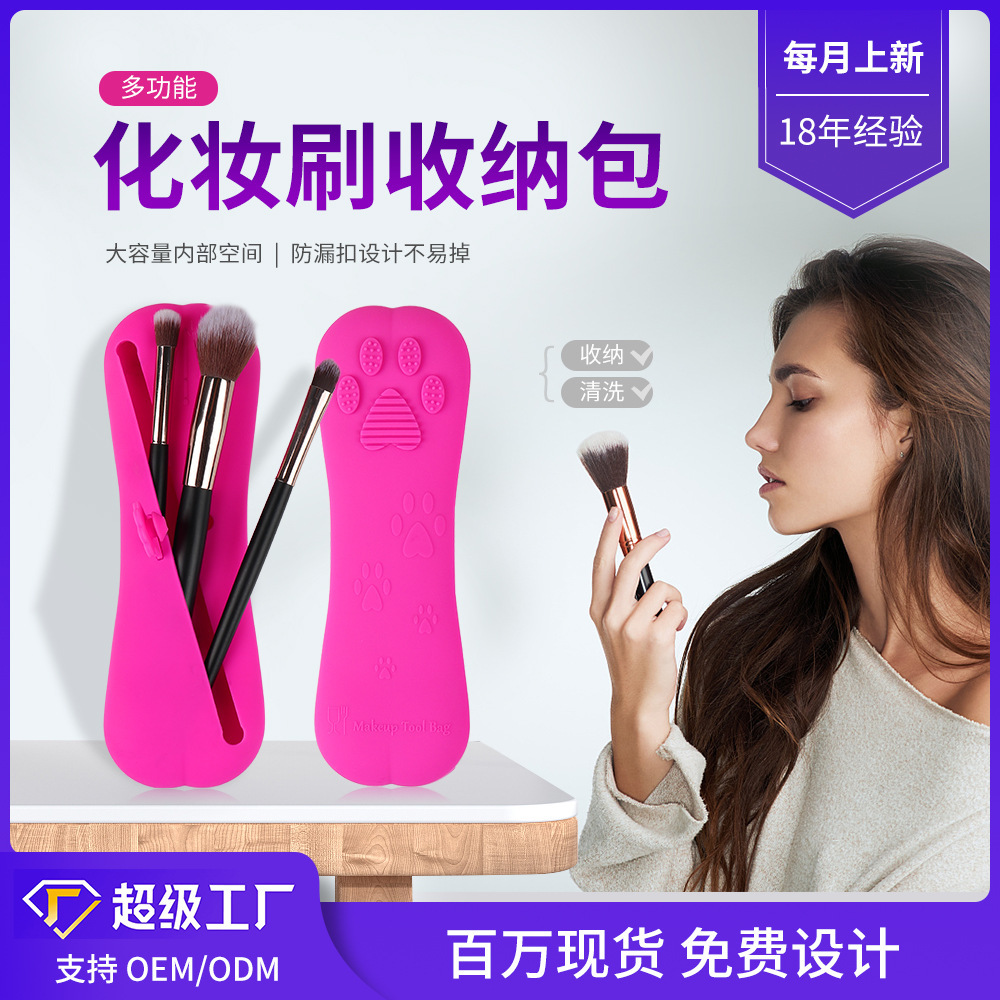 Хит продаж, сумка для хранения косметики, сумка для хранения кистей для макияжа, сумка для хранения карандашей для бровей, портативная силиконовая коробка для хранения макияжа